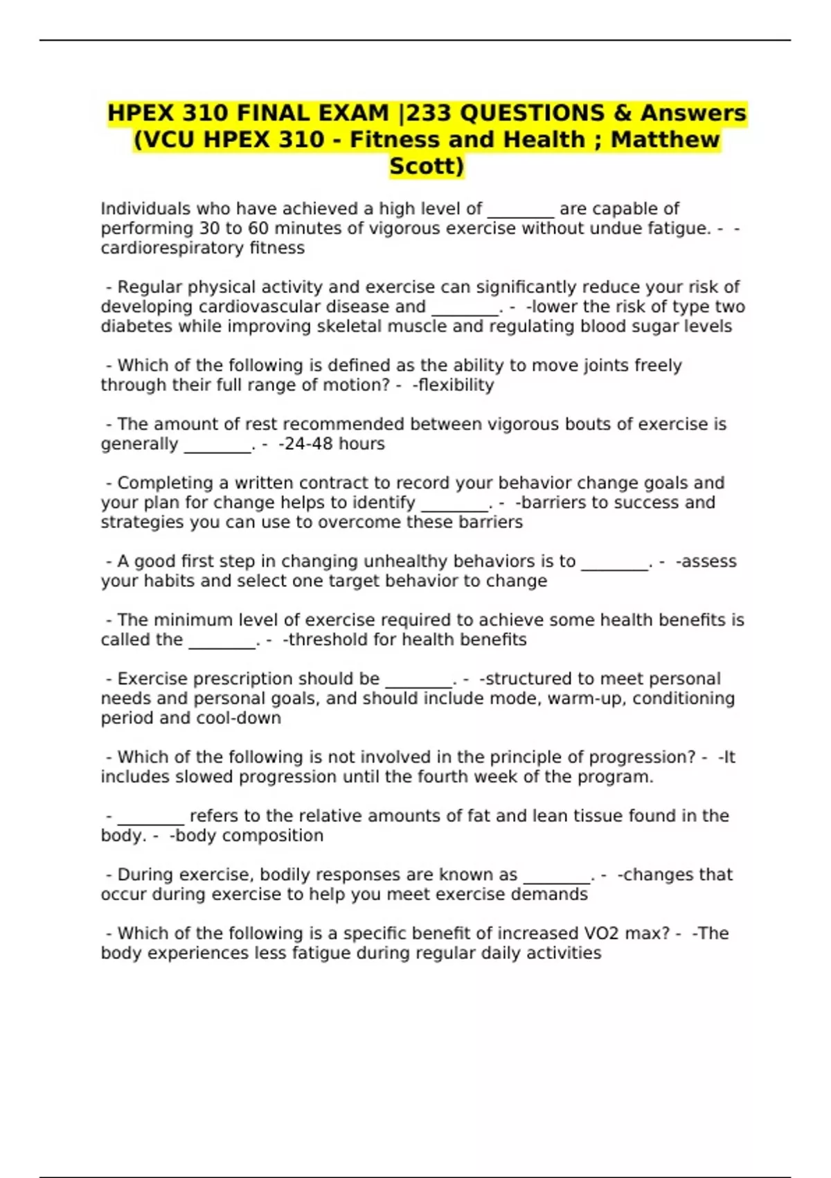 HPEX 310 FINAL EXAM |233 QUESTIONS & Answers