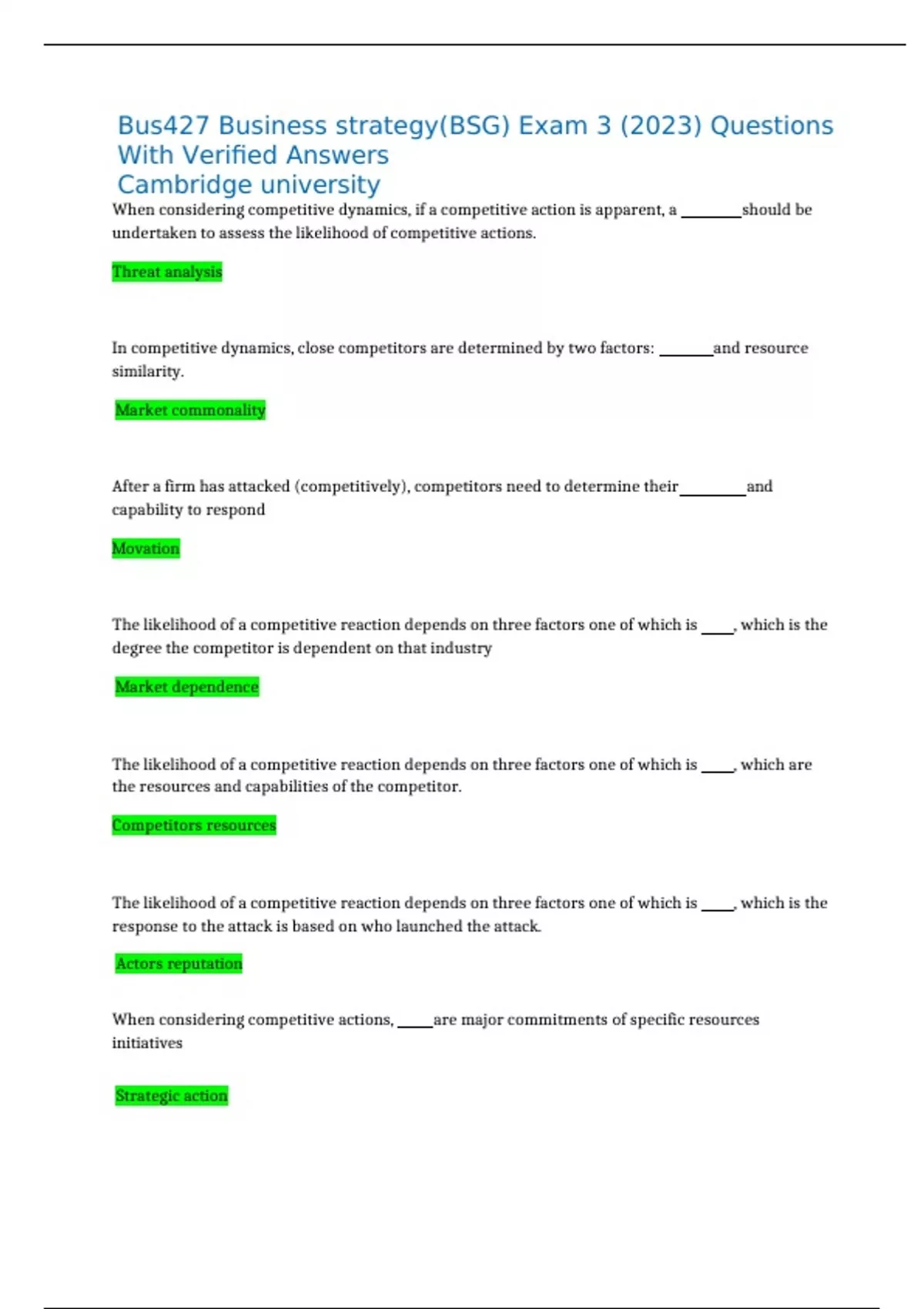 Bus427 Business strategy verified question and answer (BSG) Exam 3 (2023).docx