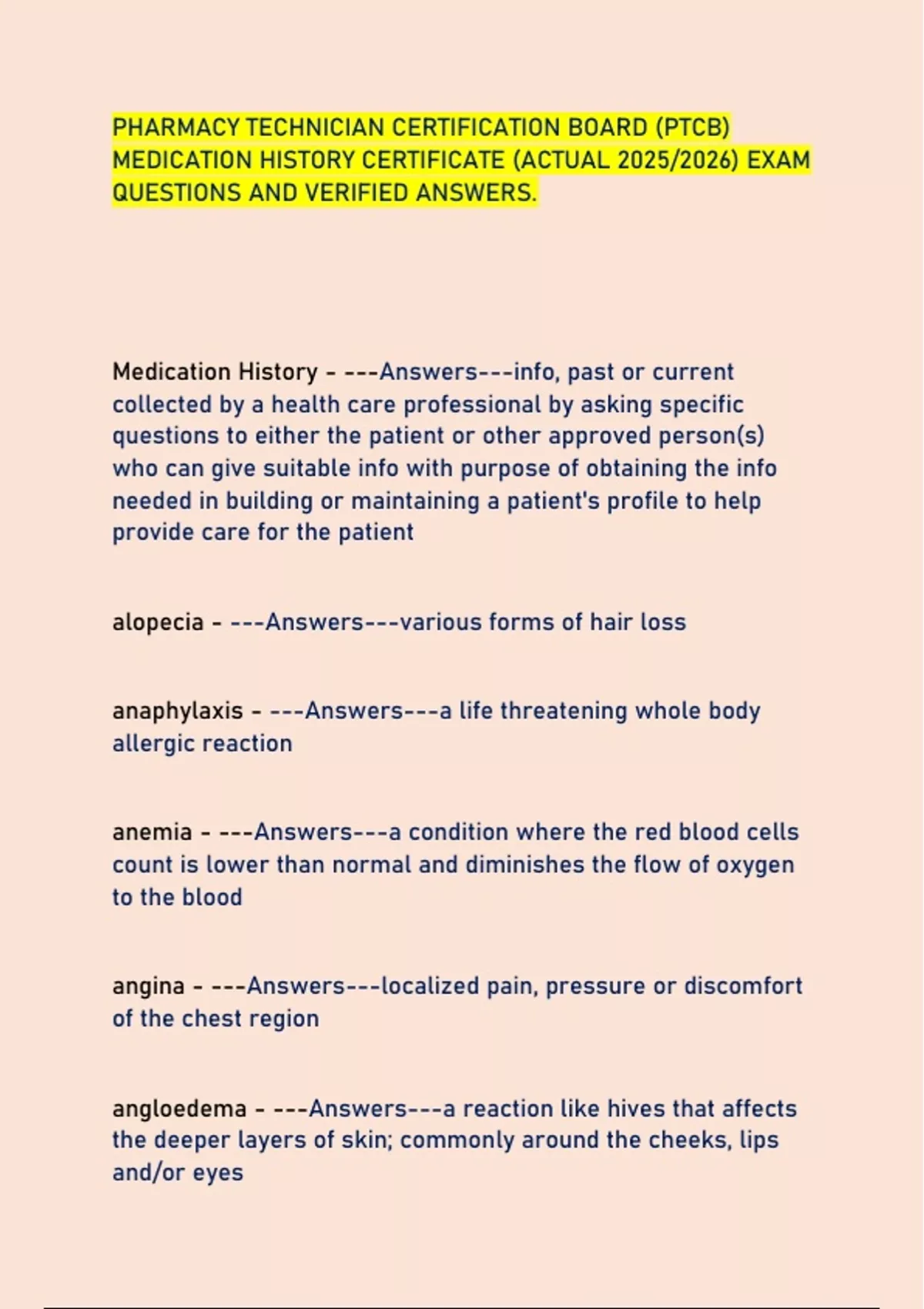 MEDICATION HISTORY CERTIFICATE (ACTUAL 2025/2026) EXAM
