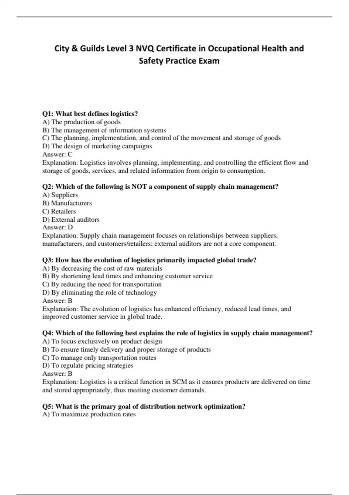 Q4: Which of the following best explains the role of logistics in supply chain management?