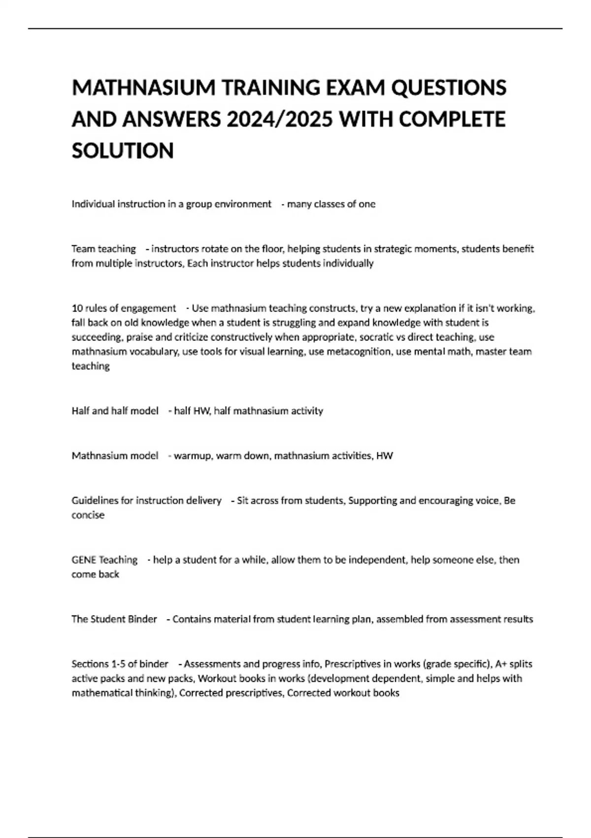 MATHNASIUM TRAINING EXAM QUESTIONS AND ANSWERS WITH COMPLETE SOLUTION