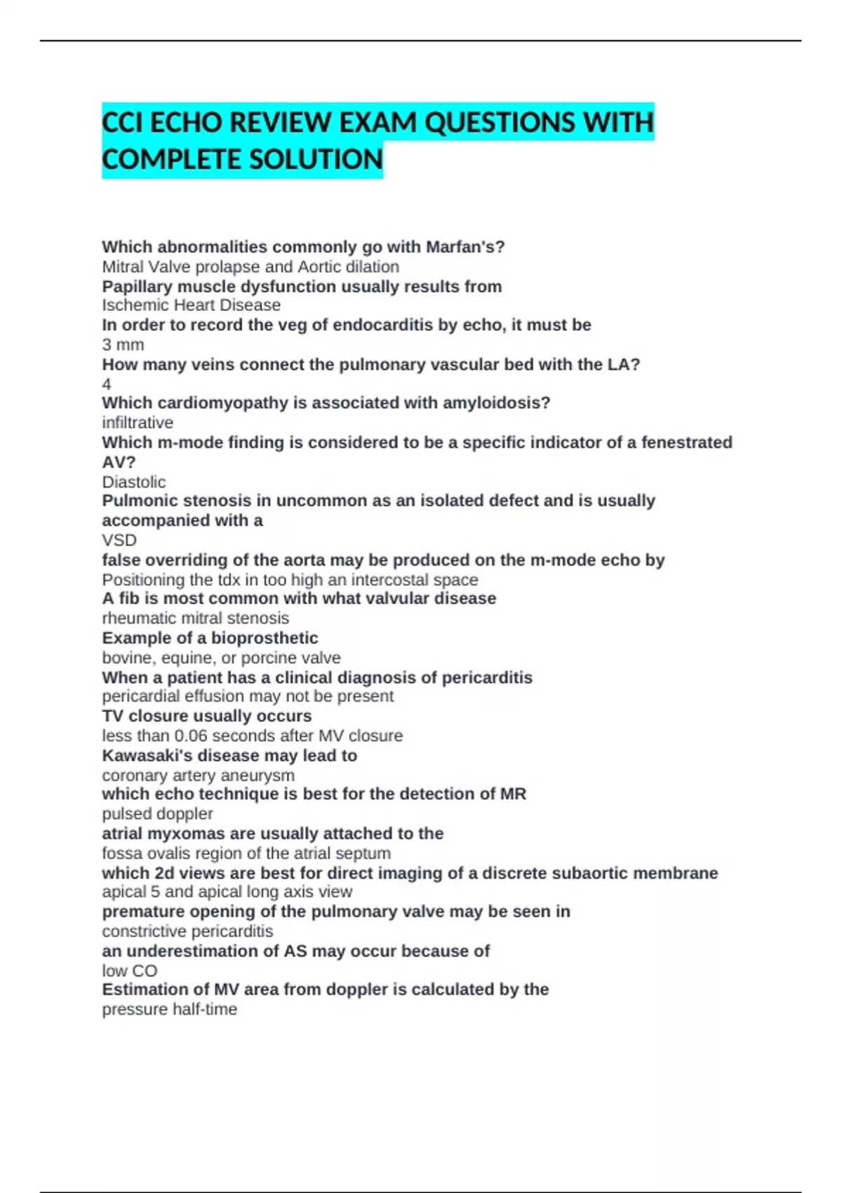 CCI ECHO REVIEW EXAM QUESTIONS WITH COMPLETE SOLUTION