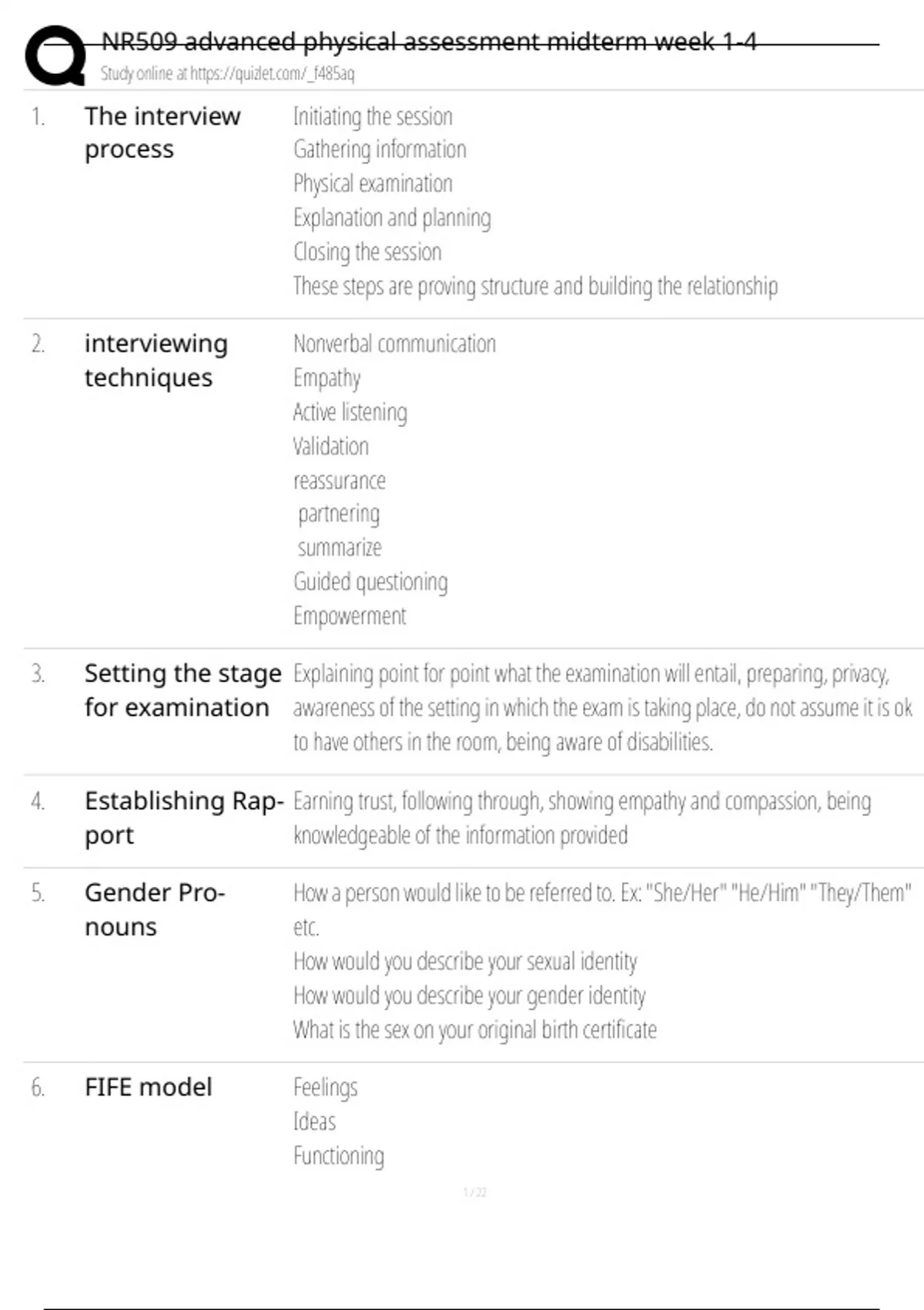 skilled interview- nication, validation, reassurance, partnering, summarization, transitions, empow-