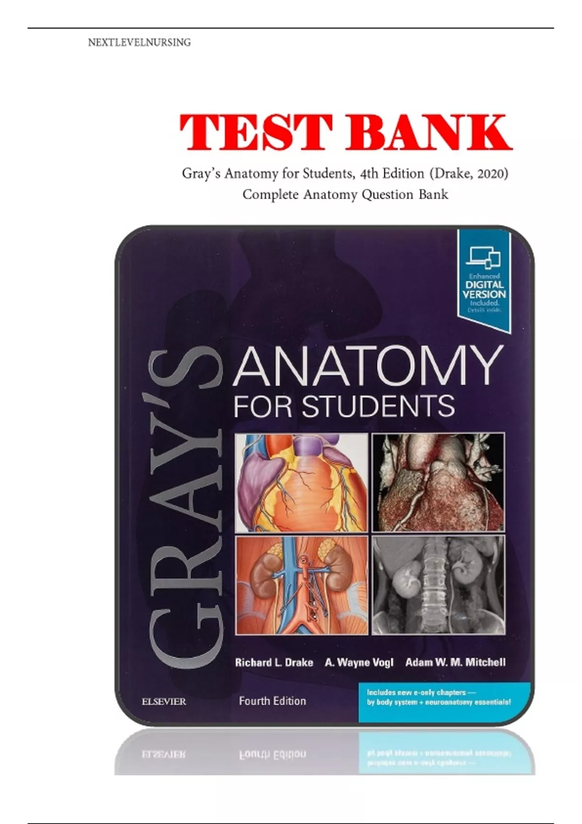 Prepare for exams and clinical practice with the complete test bank for Gray’s Anatomy for Students, 4th Edition by Richard Drake (2020). This comprehensive resource includes all chapters with anatomy-focused questions that reflect the detailed content of the textbook. Featuring multiple-choice, true/false, and clinical application questions, the test bank is designed to help you master the structure and function of the human body. Verified answers and rationales are provided to enhance understanding of key concepts in gross anatomy, systems, and functional anatomy. Ideal for medical, nursing, and allied health students preparing for exams or clinical assessments.