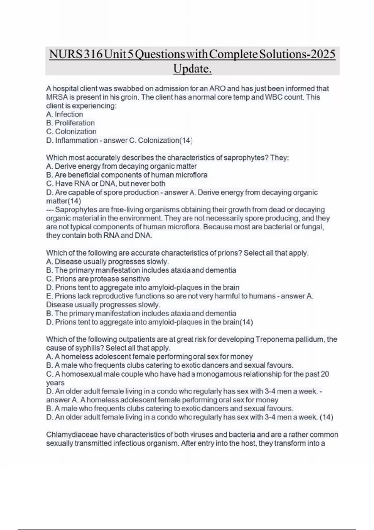 NURS 316 Unit 5 Questions with Complete Solutions-2025 Update.