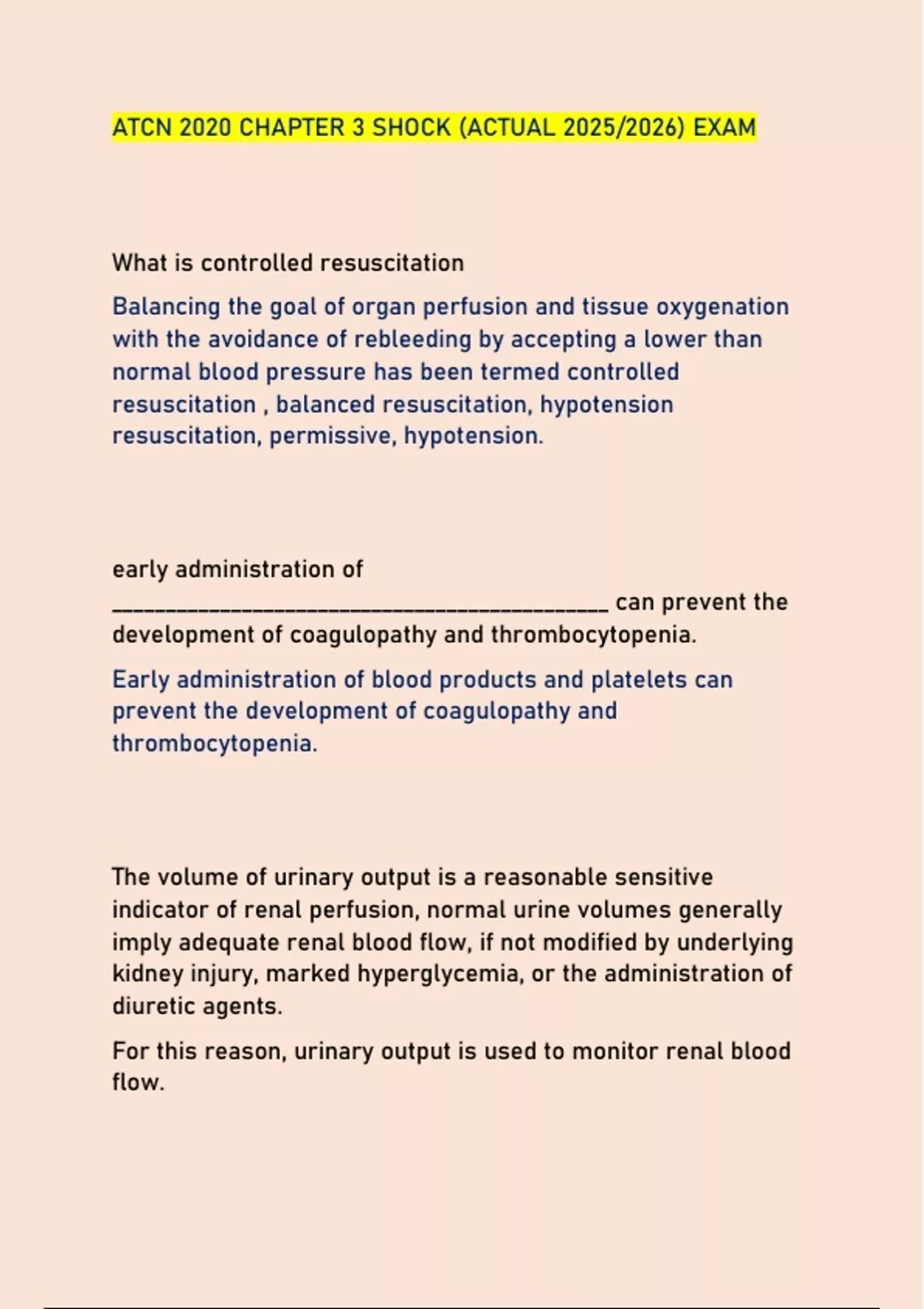 ATCN 2020 CHAPTER 3 SHOCK (ACTUAL 2025/2026) EXAM