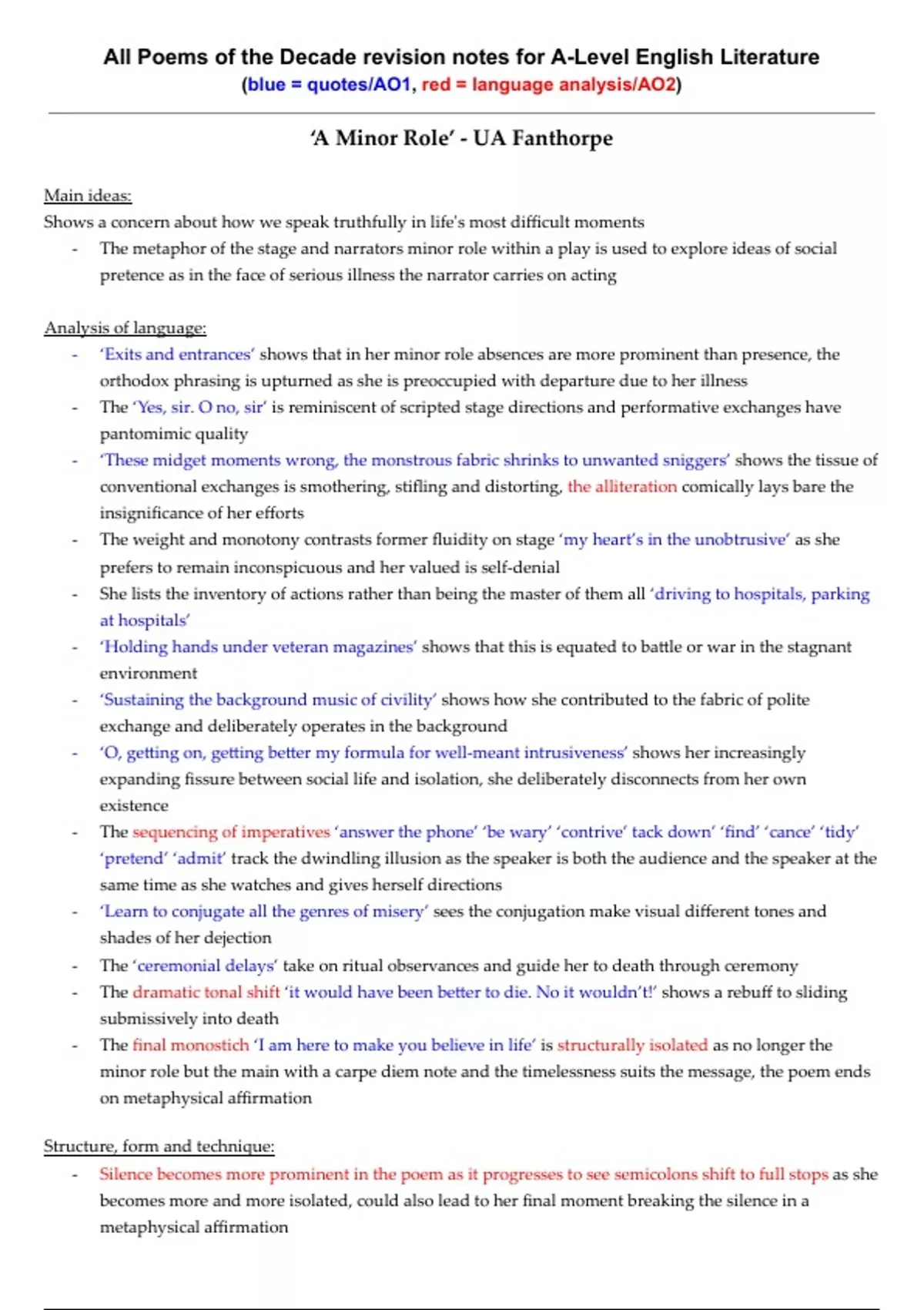 - The poem suggests a wider refusal of society to look death in the eye as Fanthrope established a dual