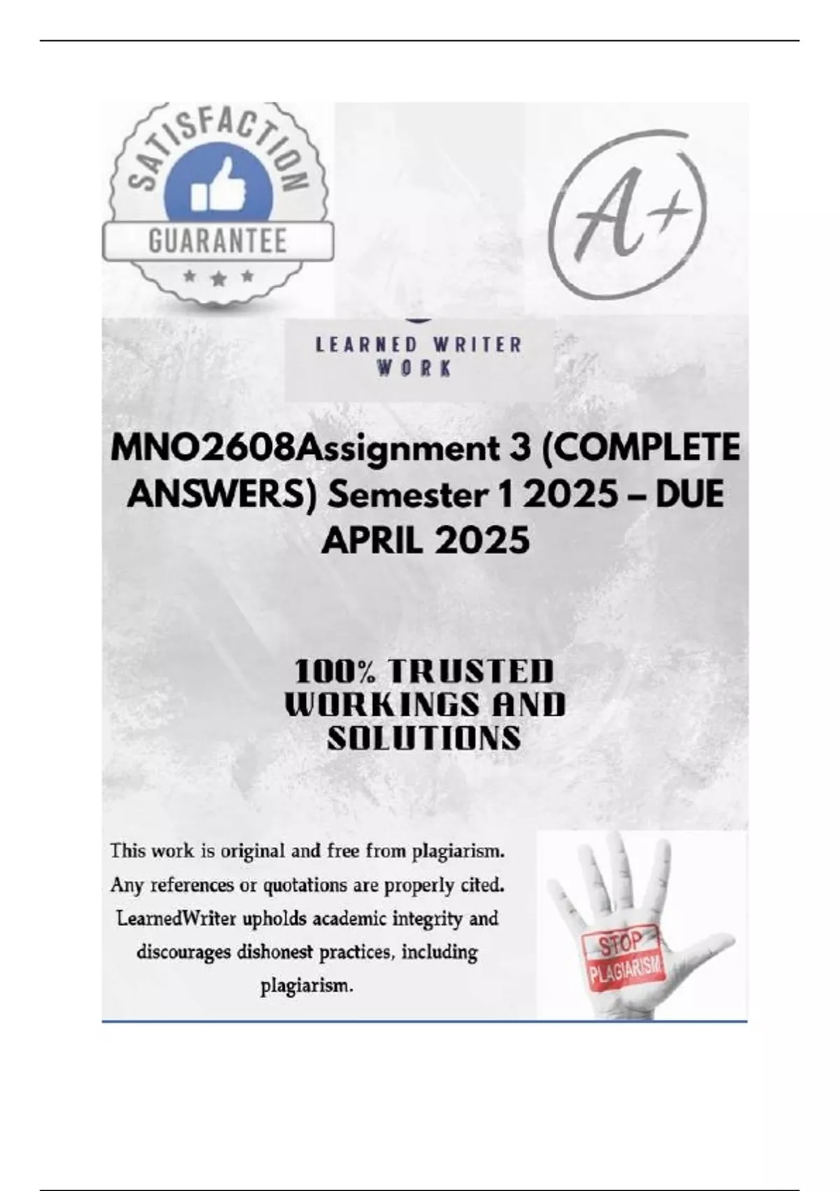,MNO2608Assignment 3 (COMPLETE ANSWERS)