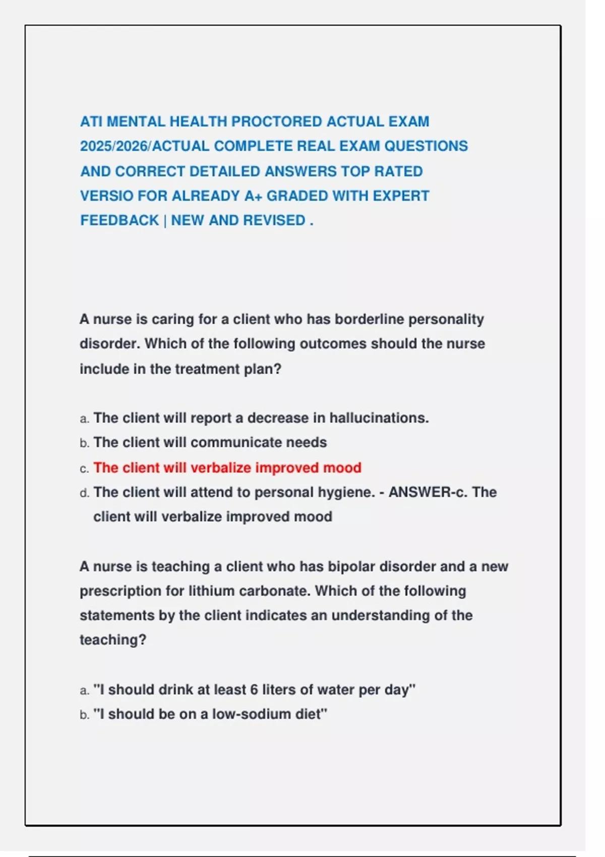 2025/2026/ACTUAL COMPLETE REAL EXAM QUESTIONS