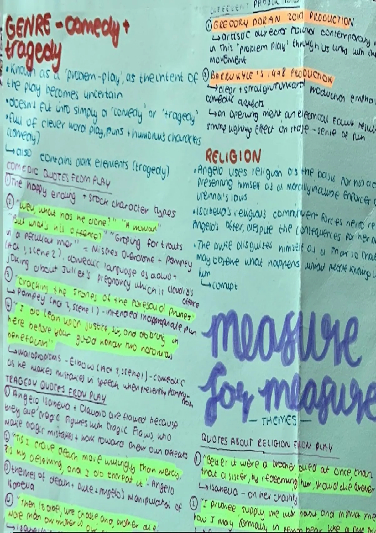 Measure For Measure Revision Notes split into characters and themes. Within these there are quotes from the play, critical interpretations across time and different production of Shakespeare's play.