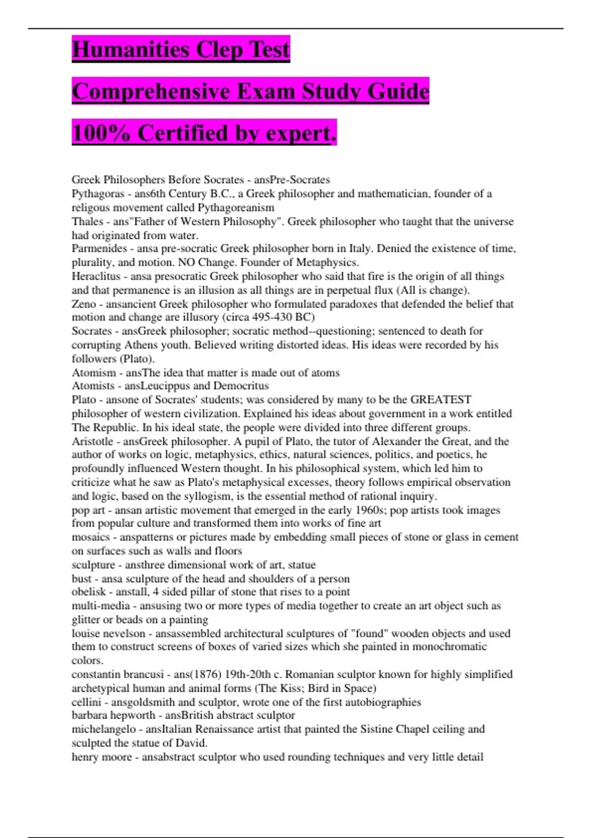,Humanities Clep Test