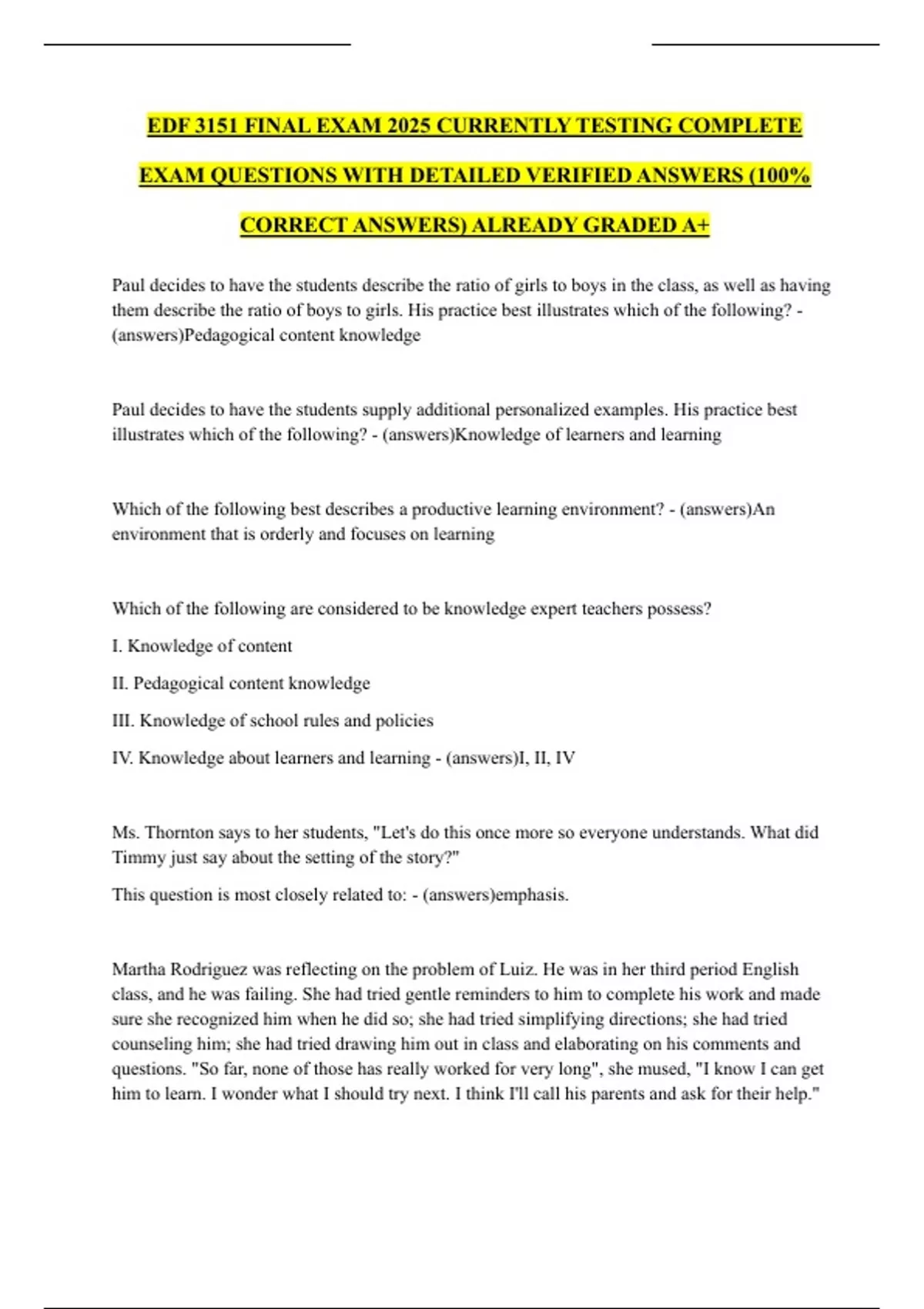 CORRECT ANSWERS) ALREADY GRADED A+