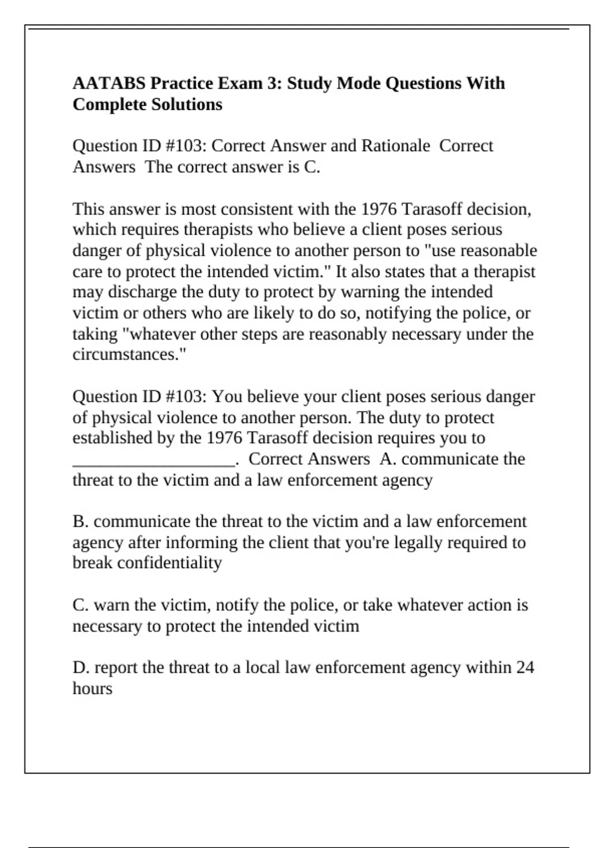 AATABS Practice Exam 3: Study Mode Questions With Complete Solutions