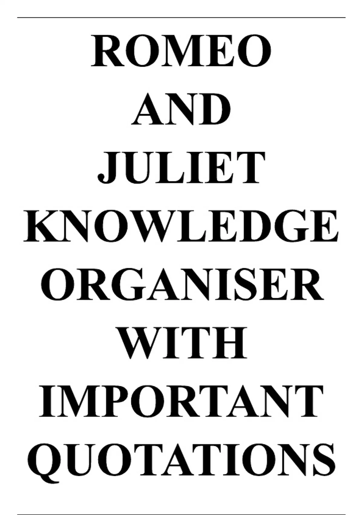 This PDF has full thorough analysis of around 200+ quotes from Romeo and Juliet. From language analysis and plot points, to the intentions of William Shakespeare and impact on the audience, the in-depth analysis provided enables you to turn each quote into a paragraph. This analysis is from a Grade 8/9 student, in English Literature.