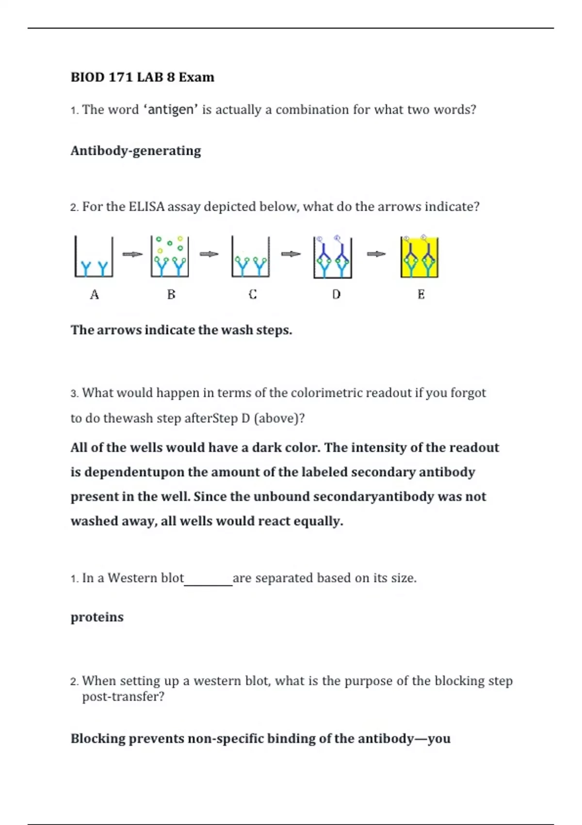 2. For the ELISA assay depicted below, what do the arrows indicate?