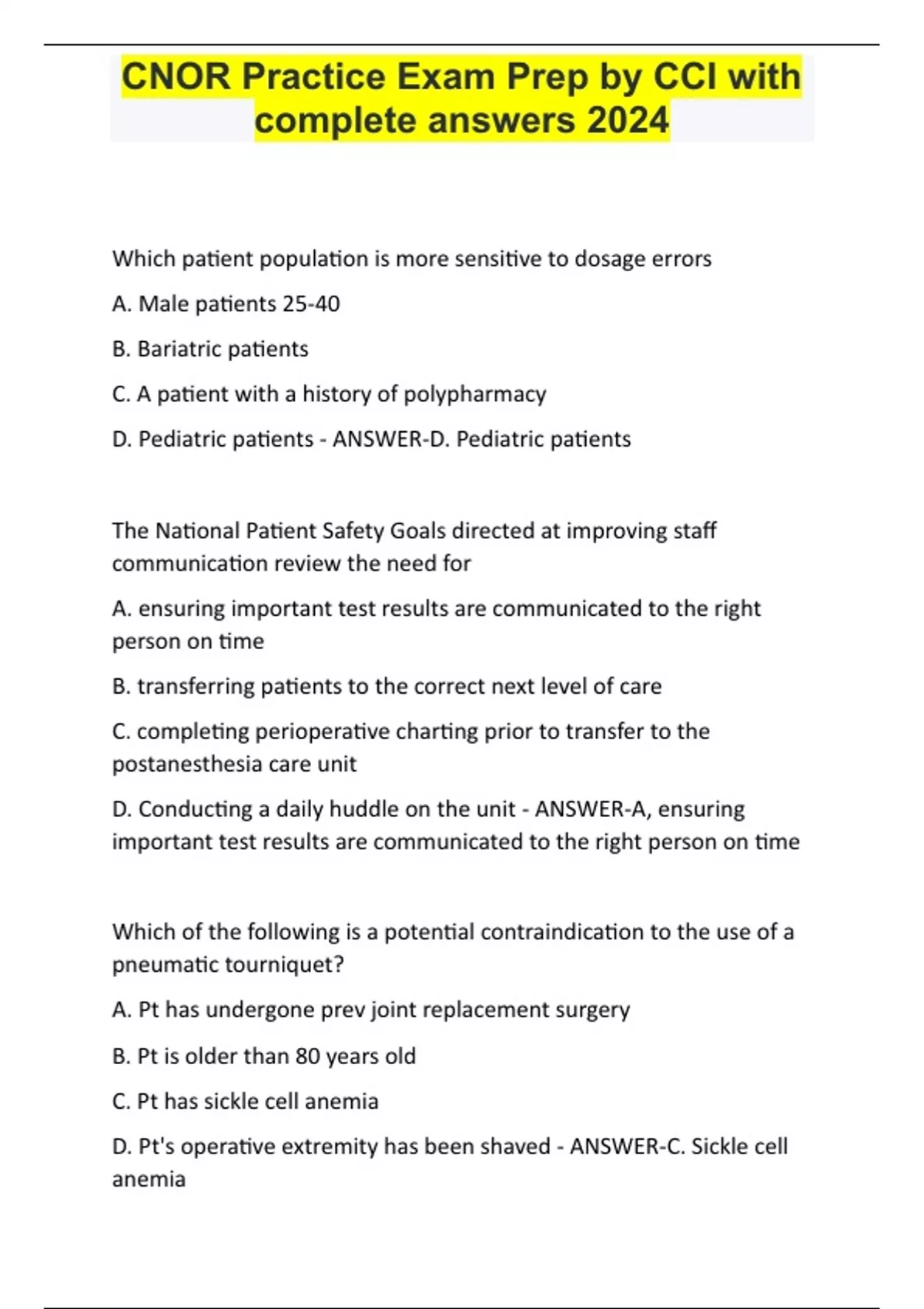 CNOR Practice Exam Prep by CCI with complete answers 2024