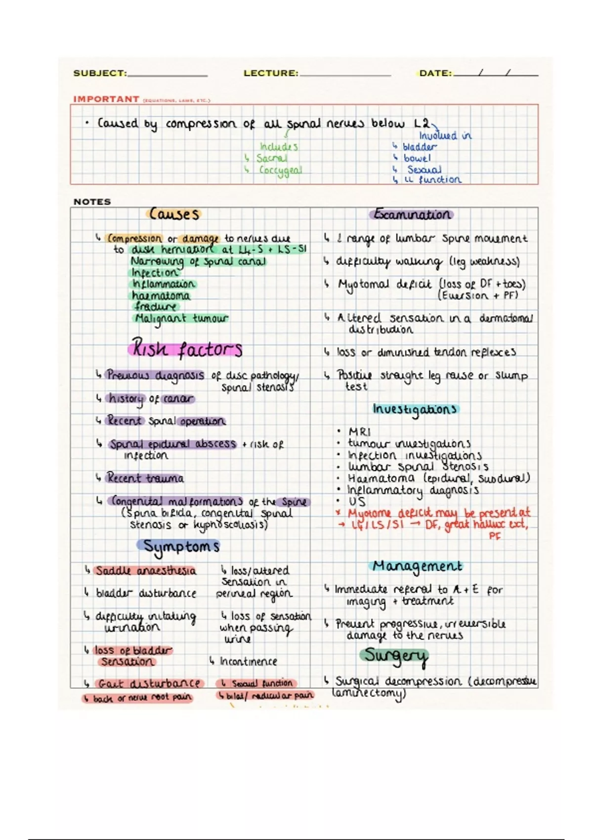 Inflatiation Myotomal deficit