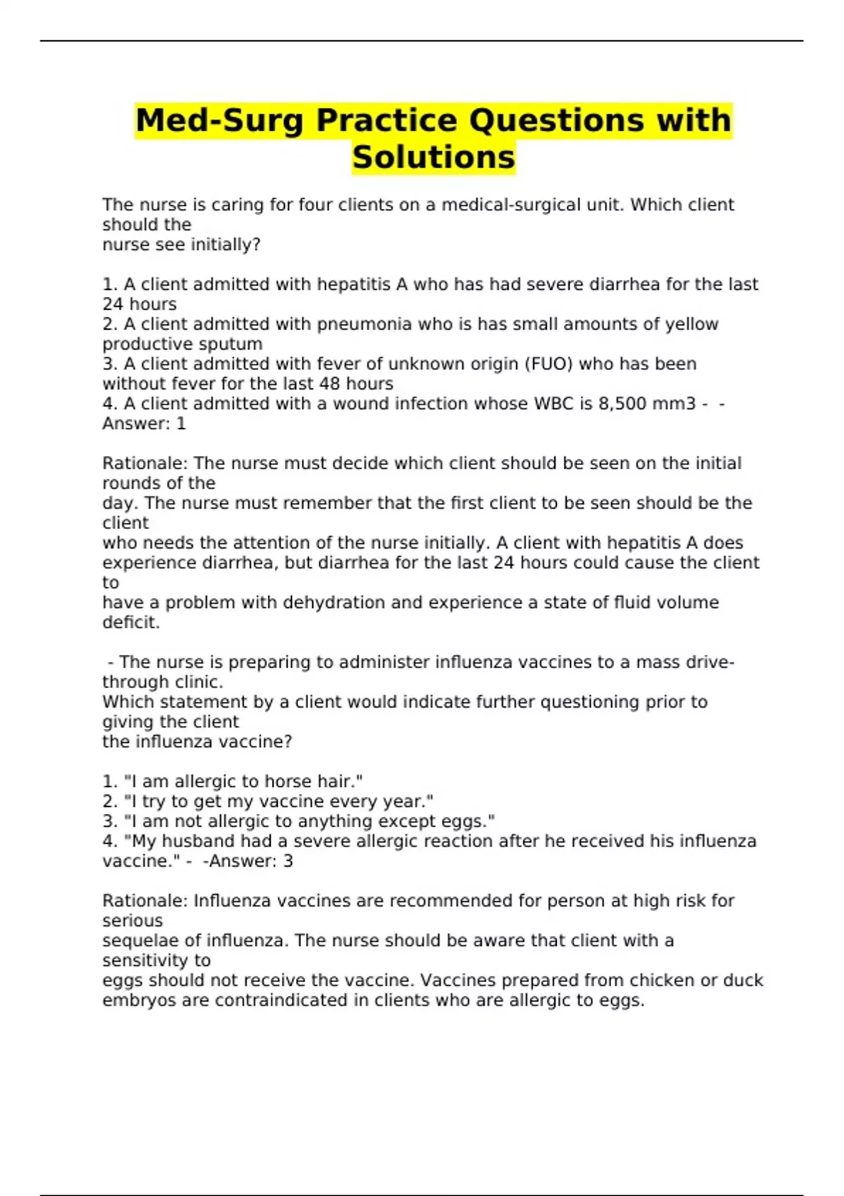 Med-Surg Practice Questions with Solutions
