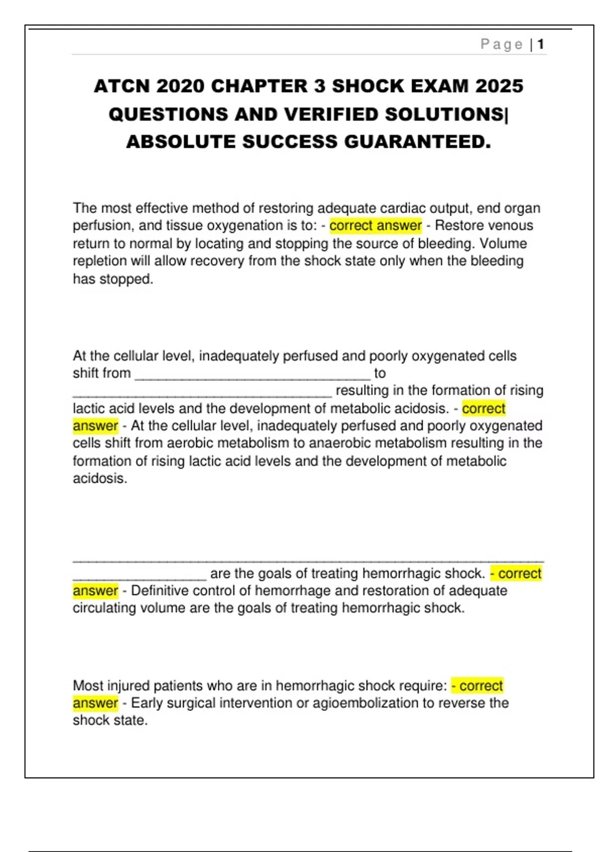 ATCN 2020 CHAPTER 3 SHOCK EXAM 2025 QUESTIONS AND VERIFIED SOLUTIONS| ABSOLUTE SUCCESS GUARANTEED.