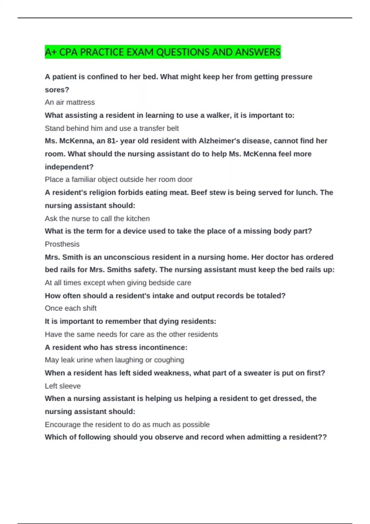 bed rails for Mrs. Smiths safety. The nursing assistant must keep the bed rails up: