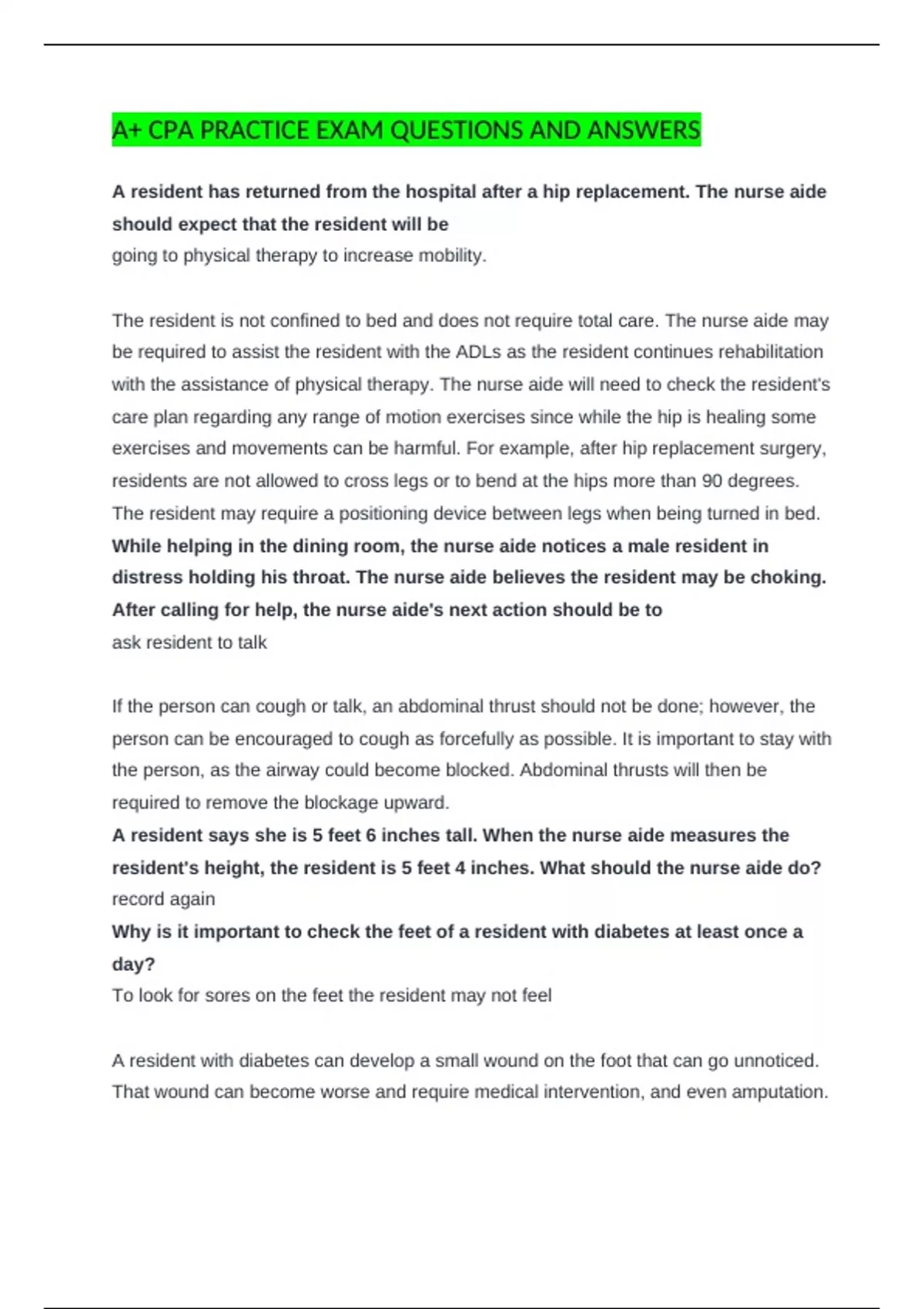 distress holding his throat. The nurse aide believes the resident may be choking.