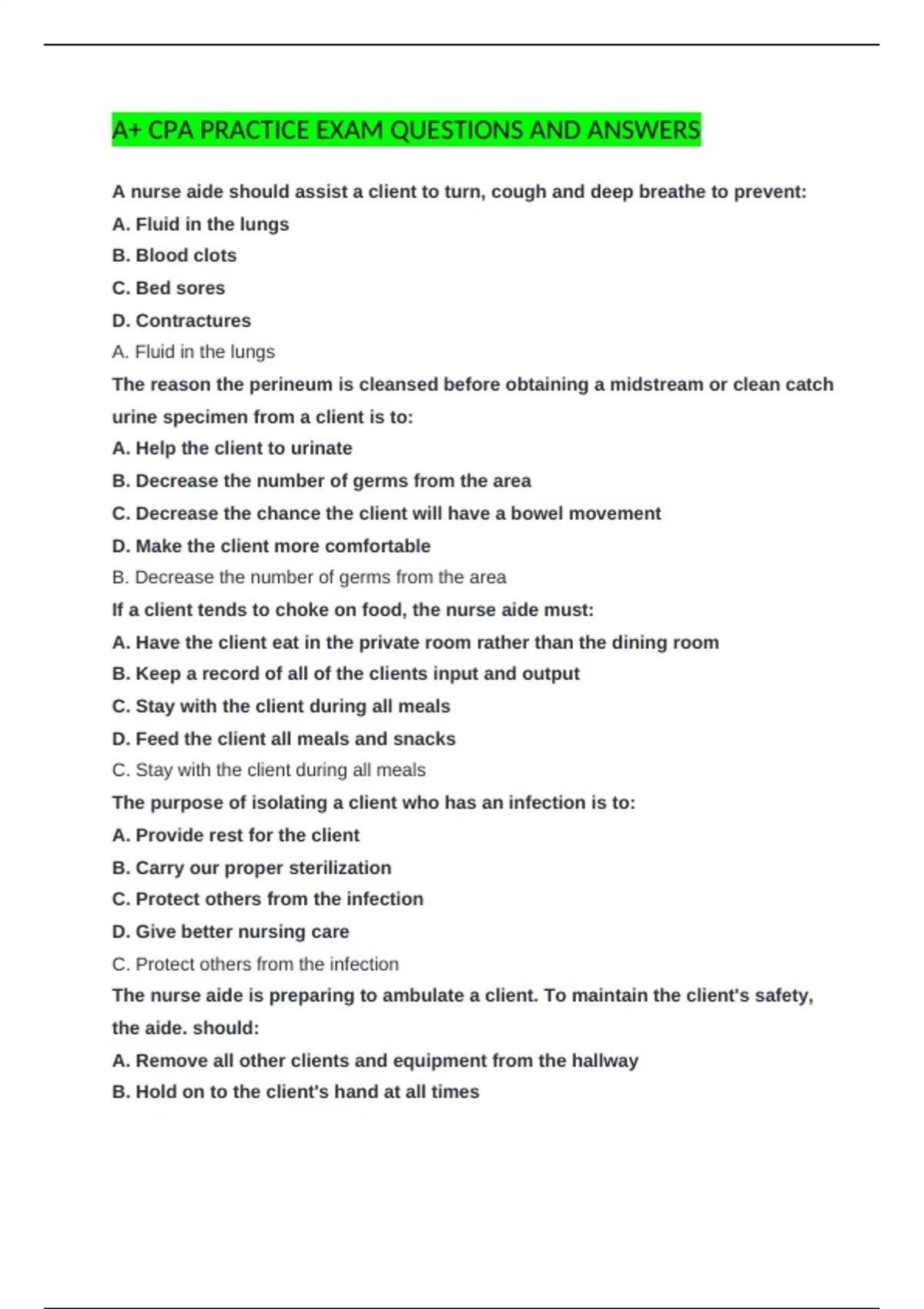 A+ CPA PRACTICE EXAM QUESTIONS AND ANSWERS