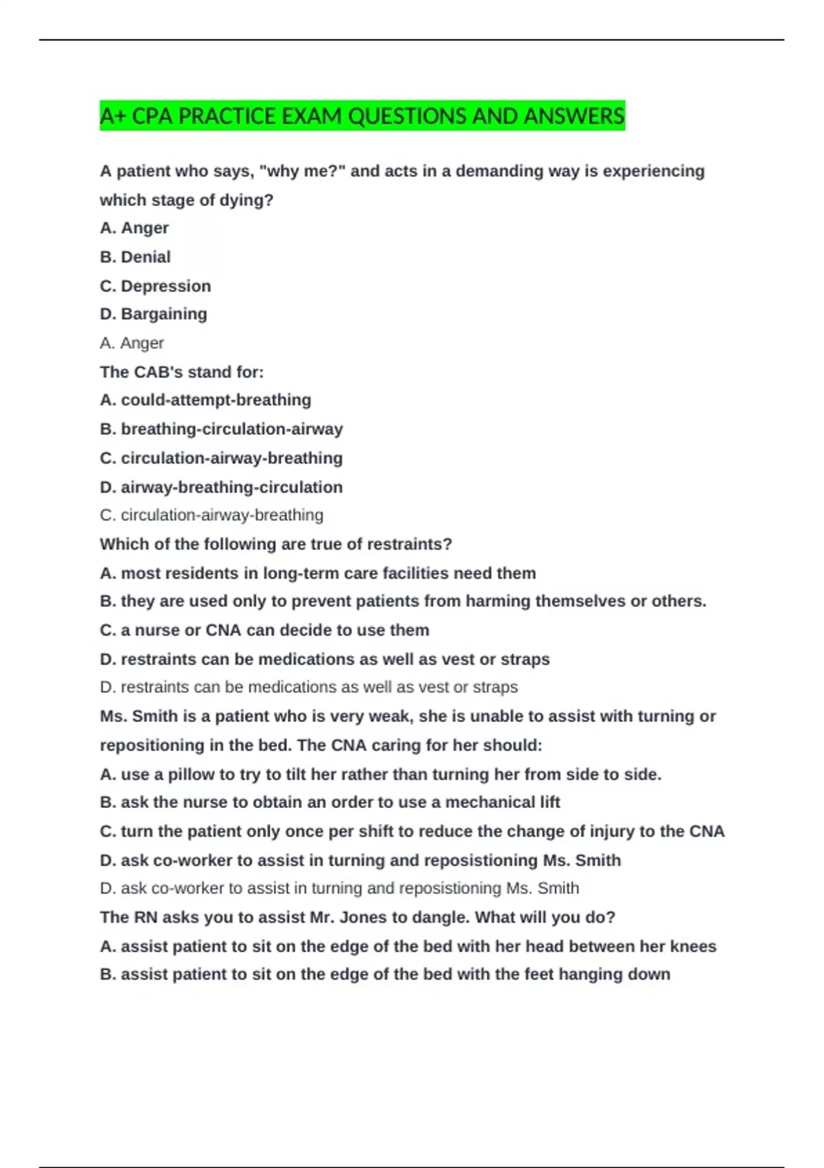 Ms. Smith is a patient who is very weak, she is unable to assist with turning or