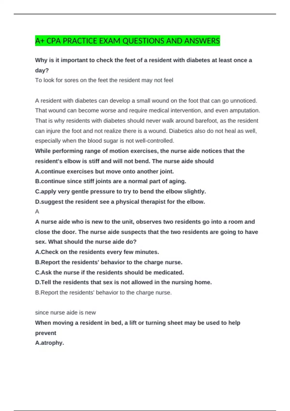 close the door. The nurse aide suspects that the two residents are going to have