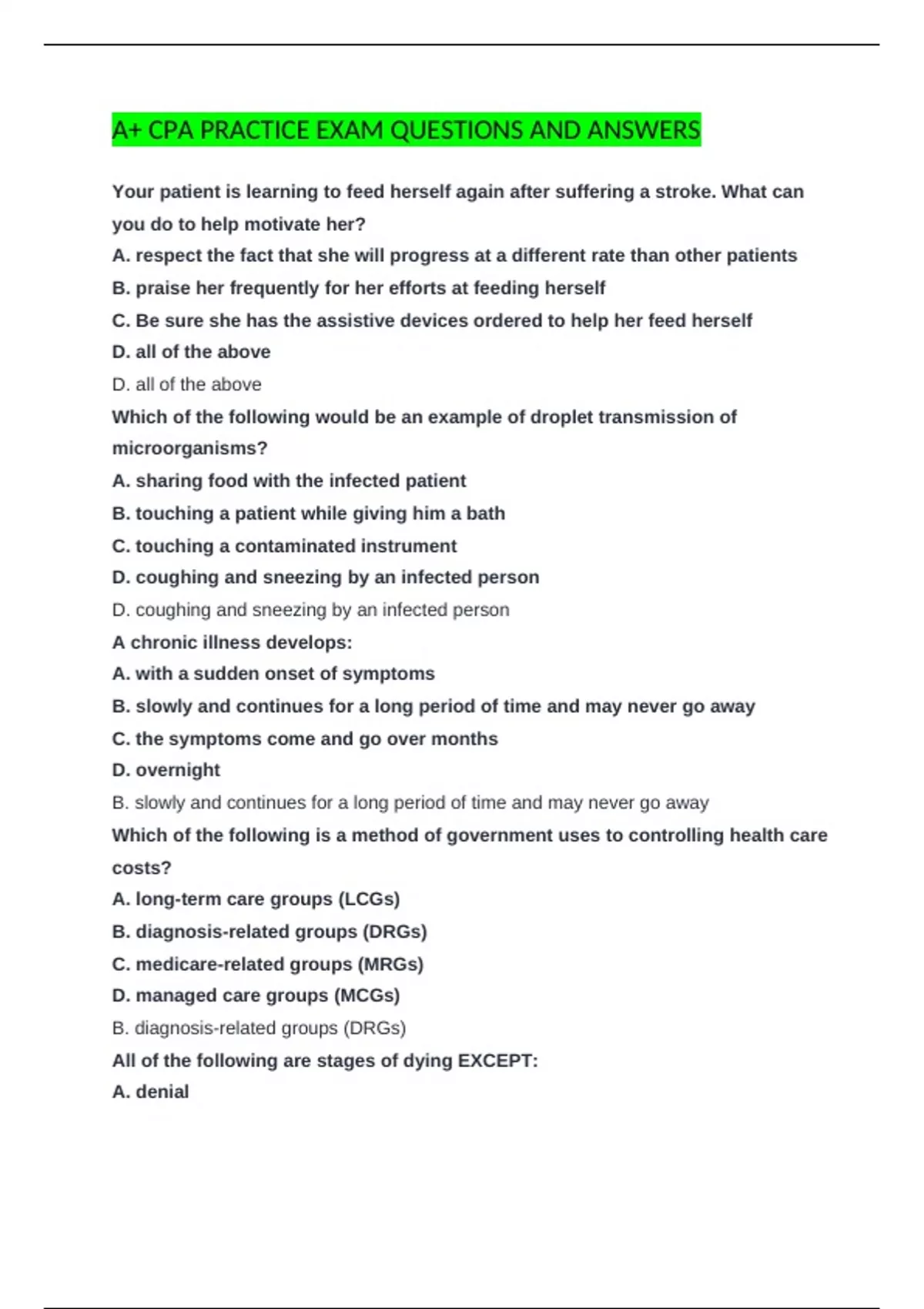 A+ CPA PRACTICE EXAM QUESTIONS AND ANSWERS