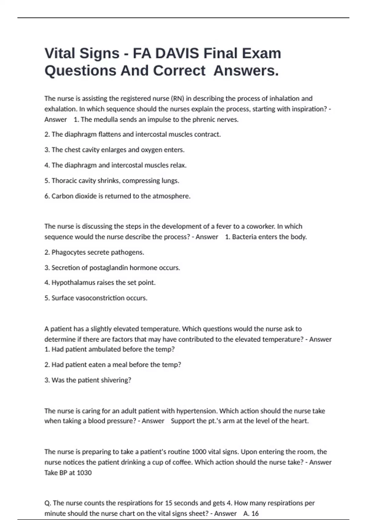 minute should the nurse chart on the vital signs sheet? - Answer A. 16