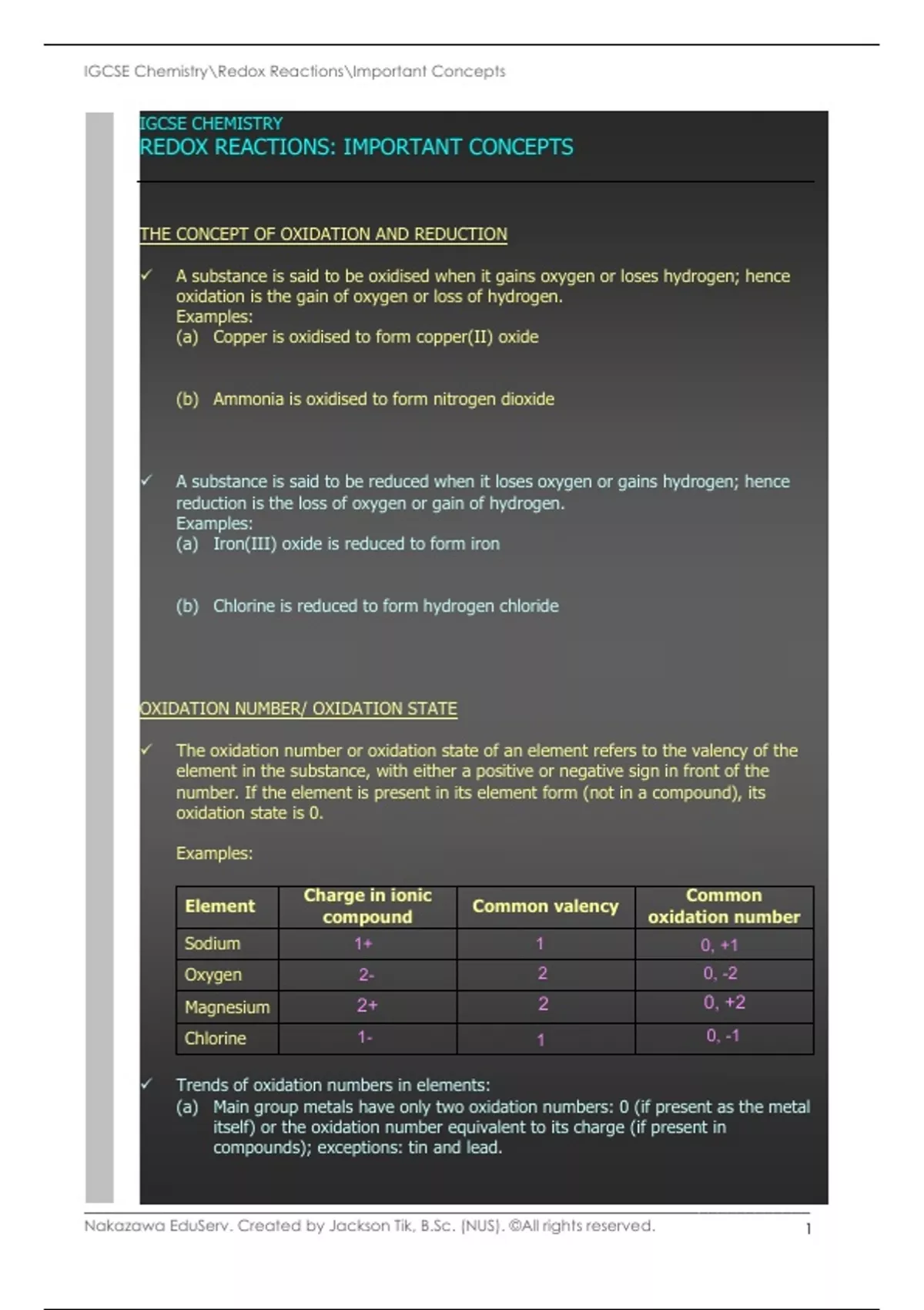 Nakazawa EduServ. Created by Jackson Tik, B.Sc. (NUS). ©All rights reserved. 1