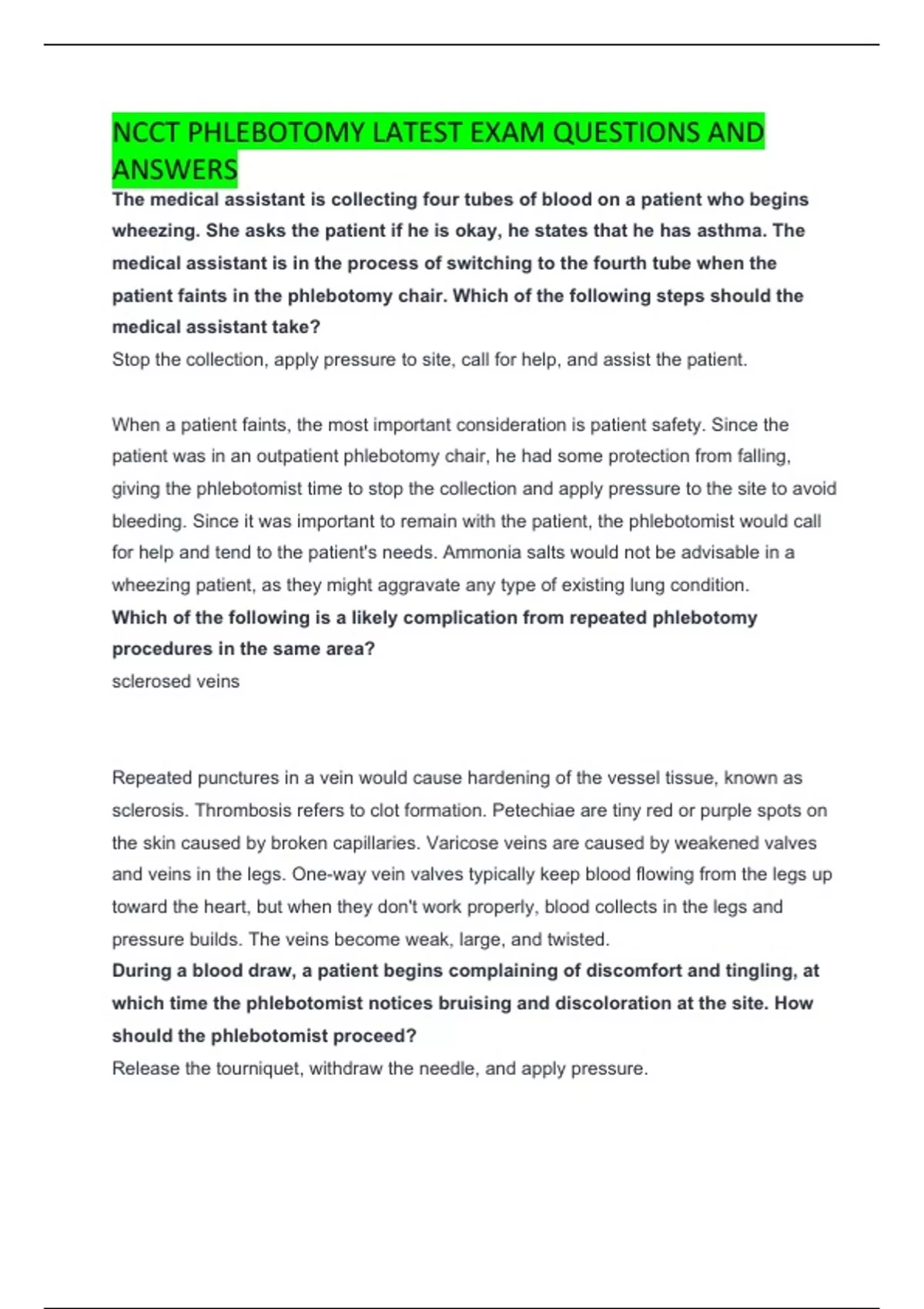 NCCT PHLEBOTOMY LATEST EXAM QUESTIONS AND