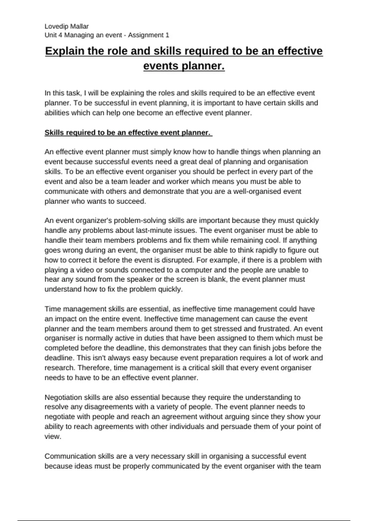 deadline. This isn't always easy because event preparation requires a lot of work and