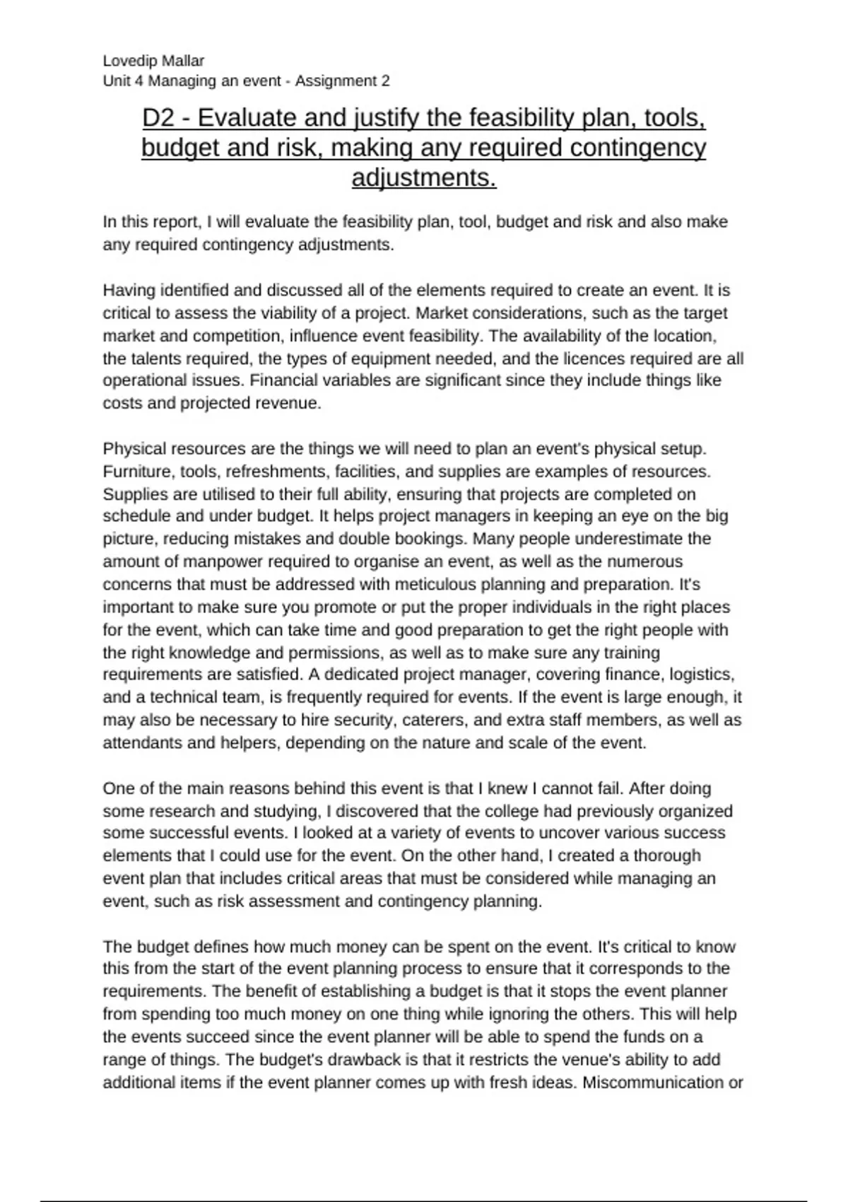 Unit 4 Managing an event - Assignment 2