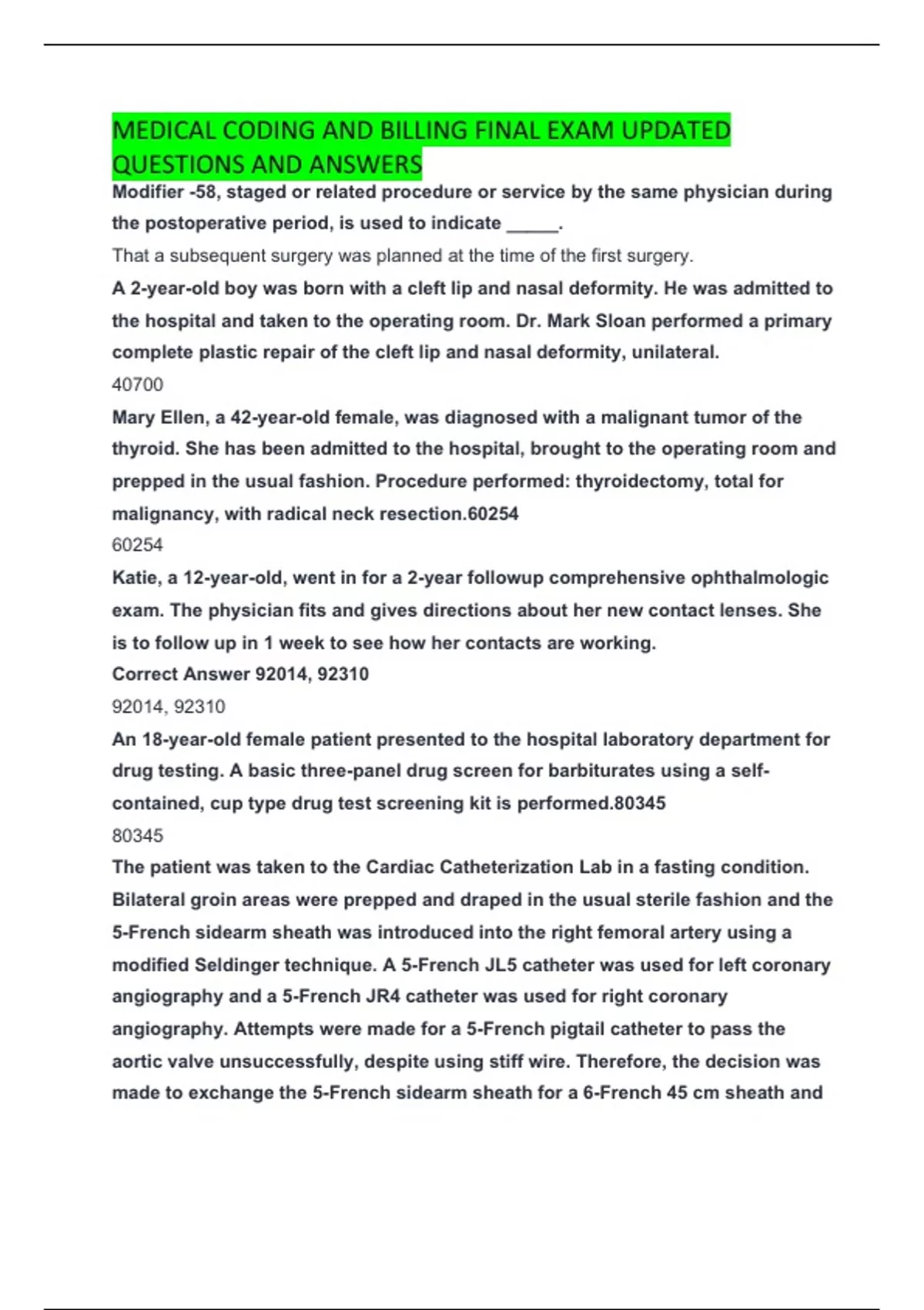 MEDICAL CODING AND BILLING FINAL EXAM UPDATED QUESTIONS AND ANSWERS