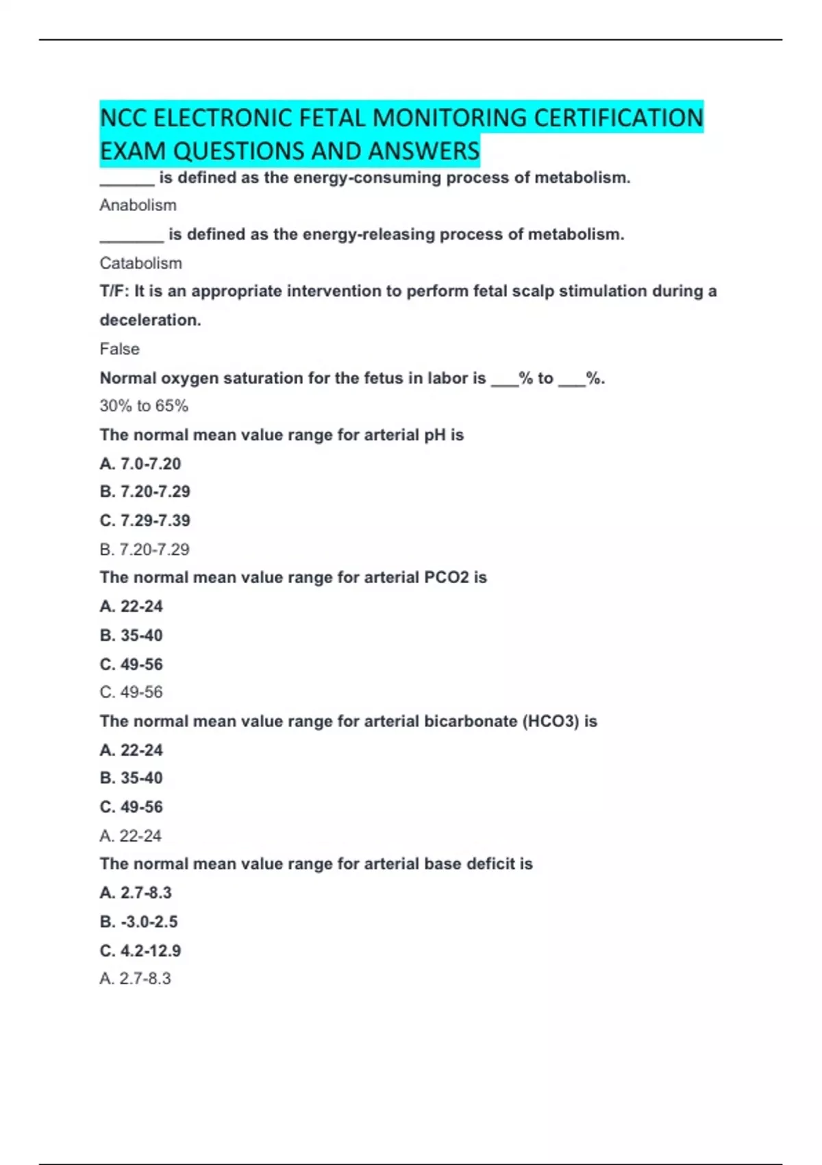 NCC ELECTRONIC FETAL MONITORING CERTIFICATION