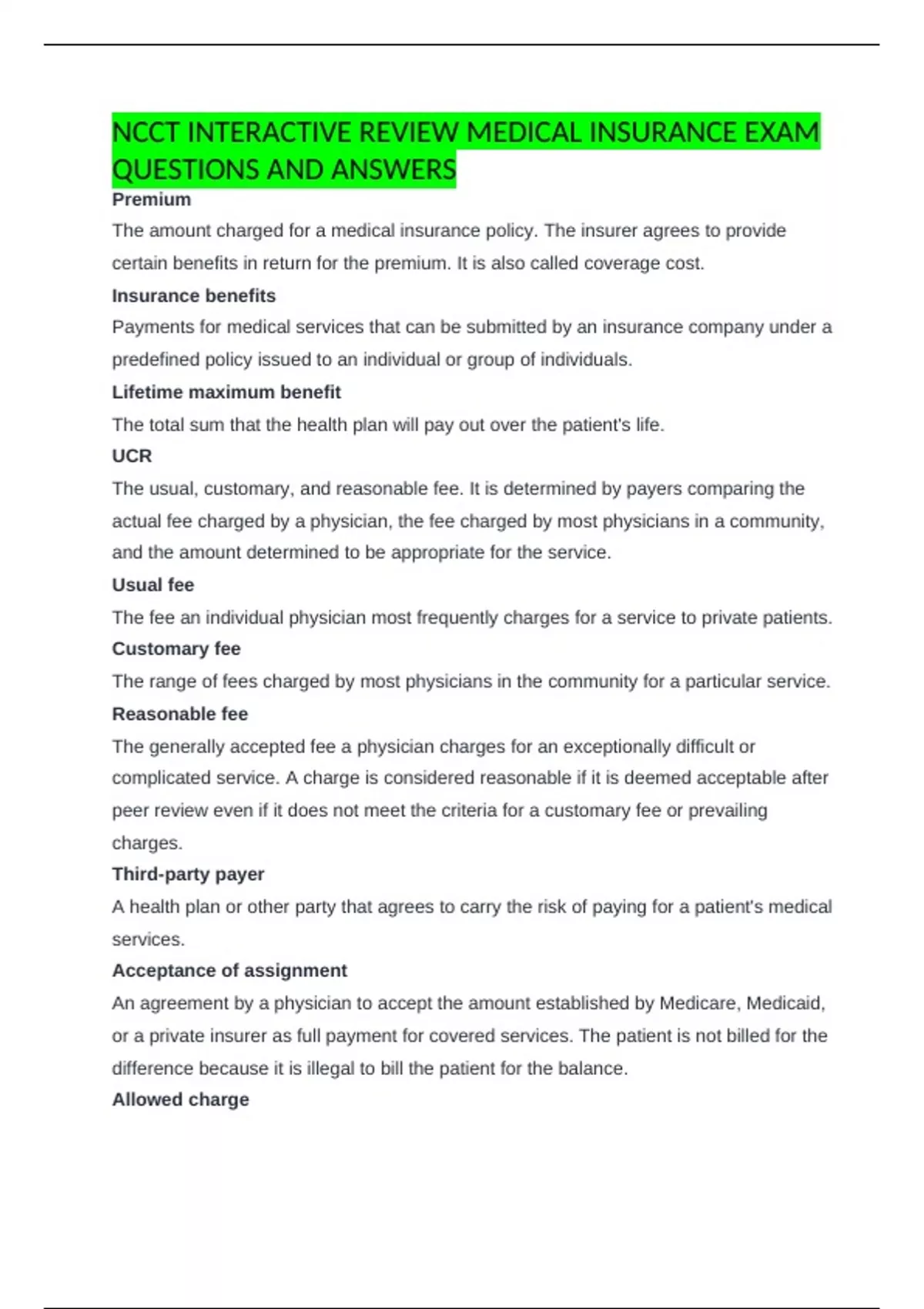 NCCT INTERACTIVE REVIEW MEDICAL INSURANCE EXAM QUESTIONS AND ANSWERS