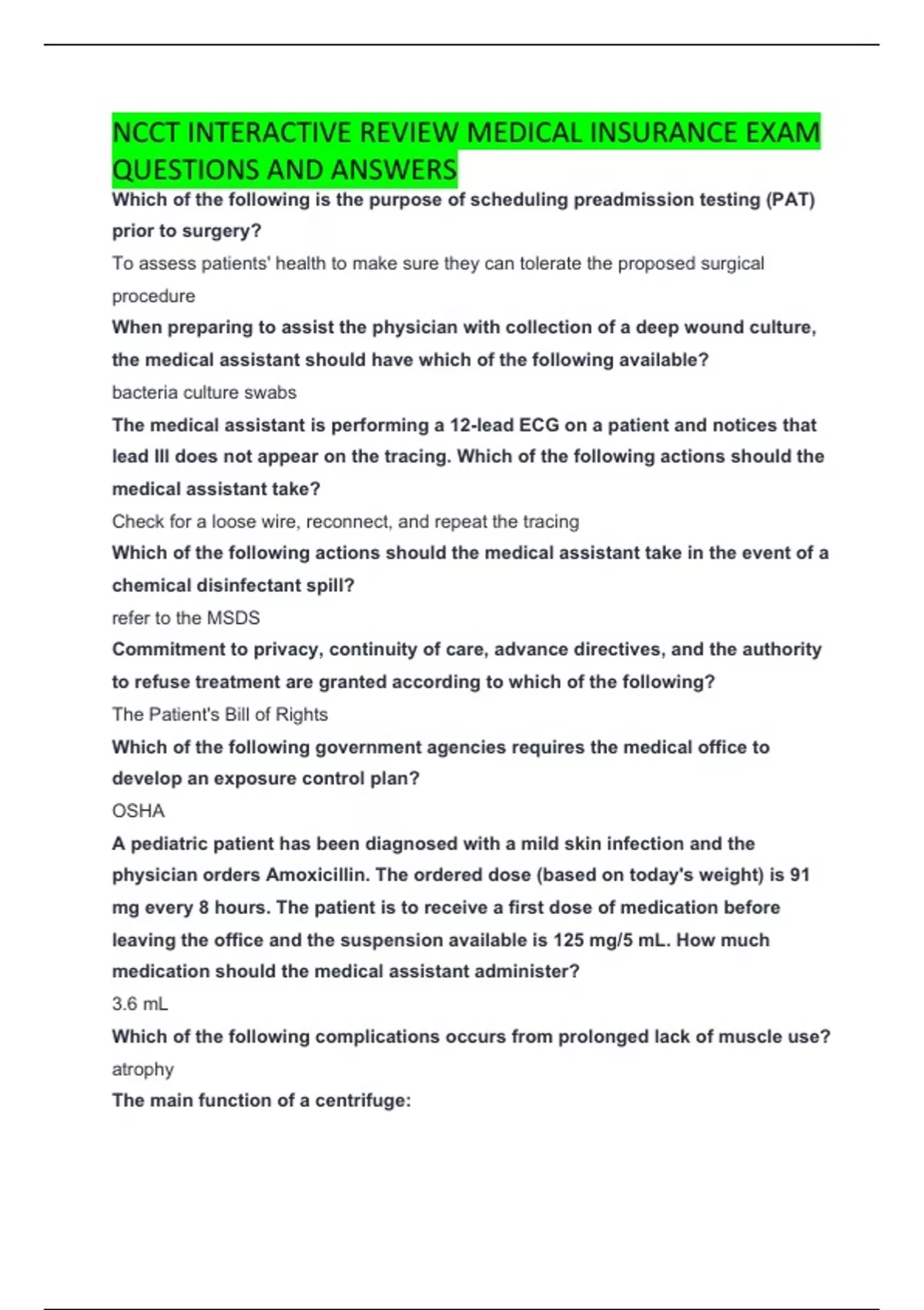 NCCT INTERACTIVE REVIEW MEDICAL INSURANCE EXAM QUESTIONS AND ANSWERS