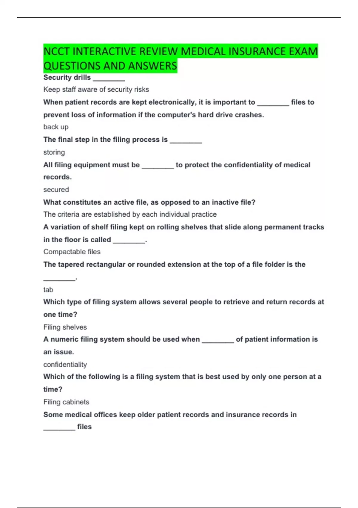 NCCT INTERACTIVE REVIEW MEDICAL INSURANCE EXAM QUESTIONS AND ANSWERS