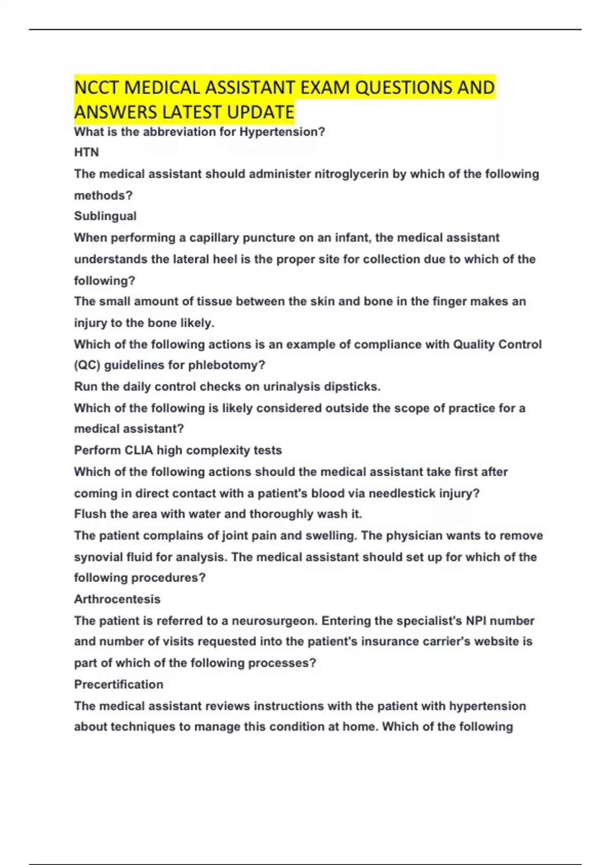 ANSWERS LATEST UPDATE
