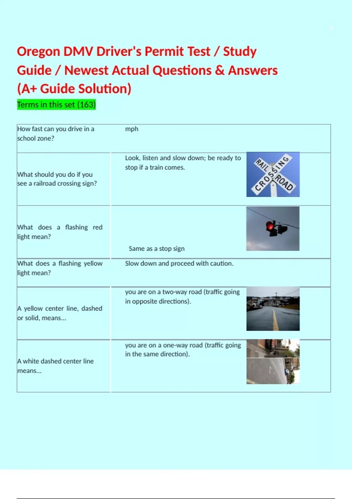 Oregon DMV Driver's Permit Test / Study Guide / Newest Actual Questions & Answers (A+ Guide Solution)