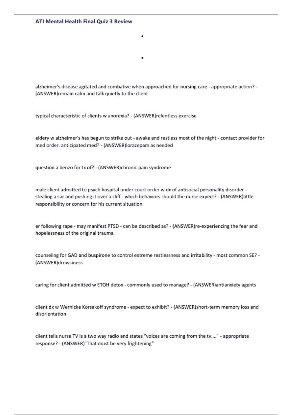 , ATI Mental Health Final Quiz 3 Review