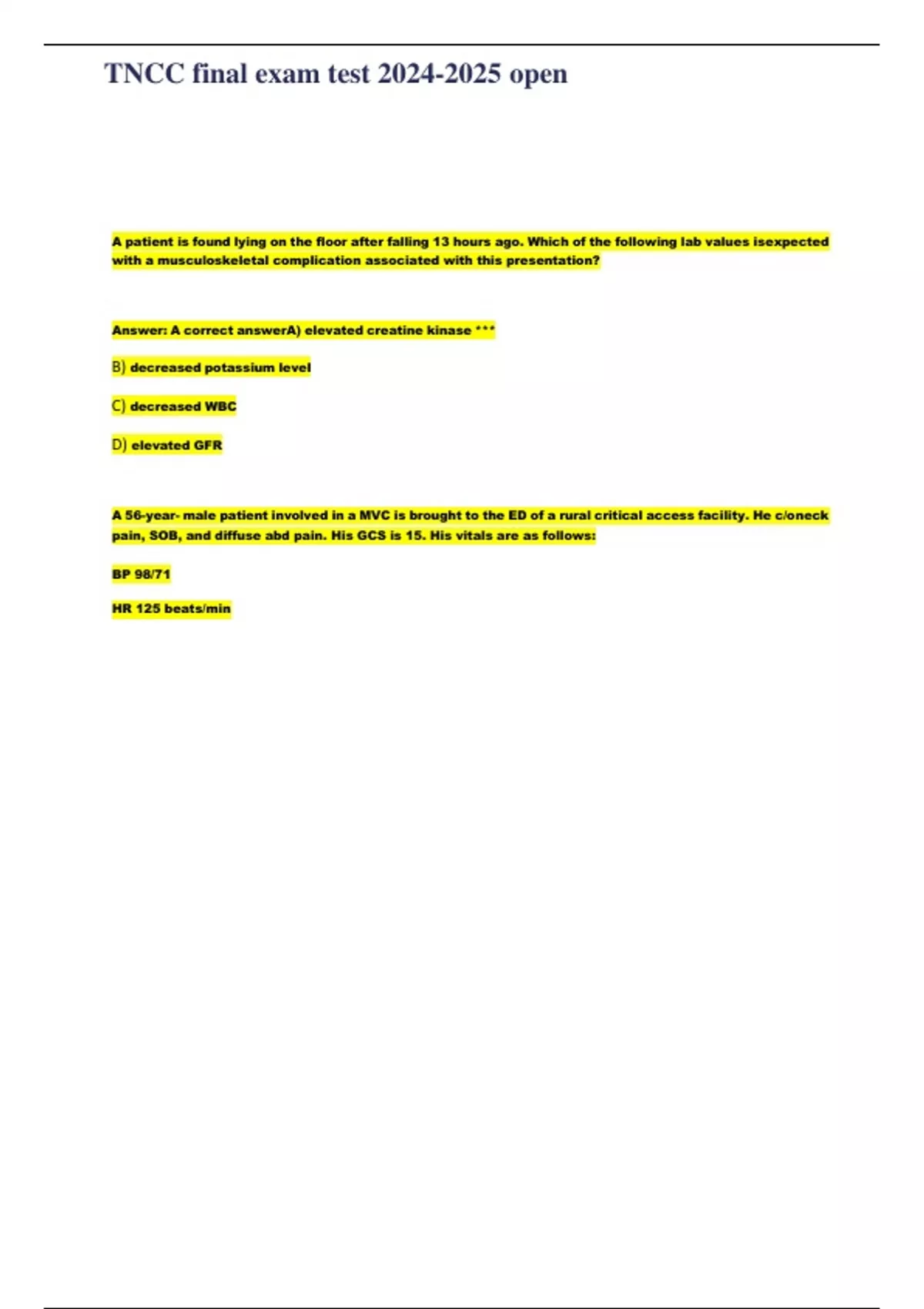 TNCC final exam test 2024-2025 open