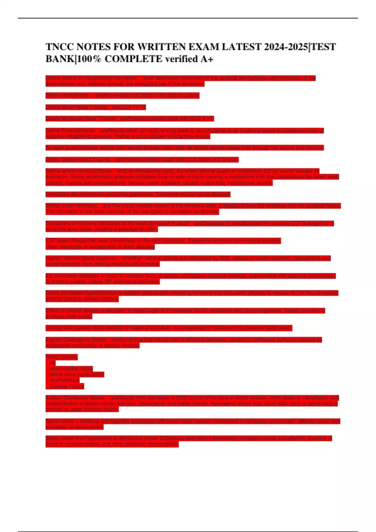 , TNCC NOTES FOR WRITTEN EXAM LATEST 2024-2025|TEST