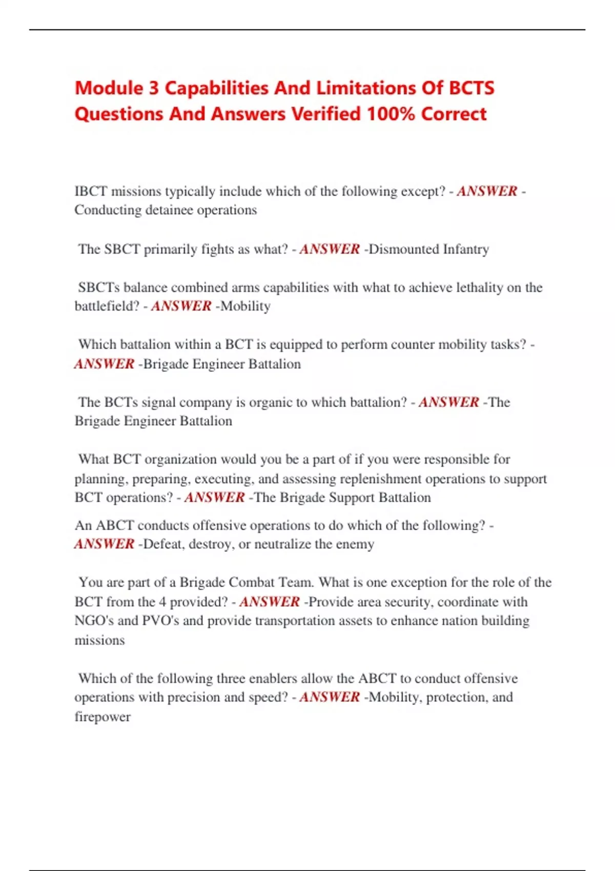 BCT from the 4 provided? - ANSWER -Provide area security, coordinate with