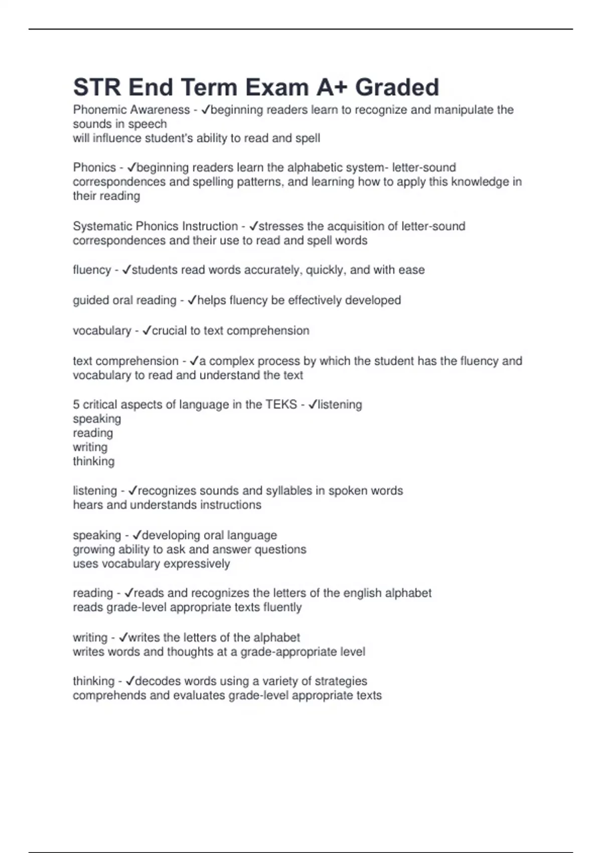 STR End Term Exam A+ Graded