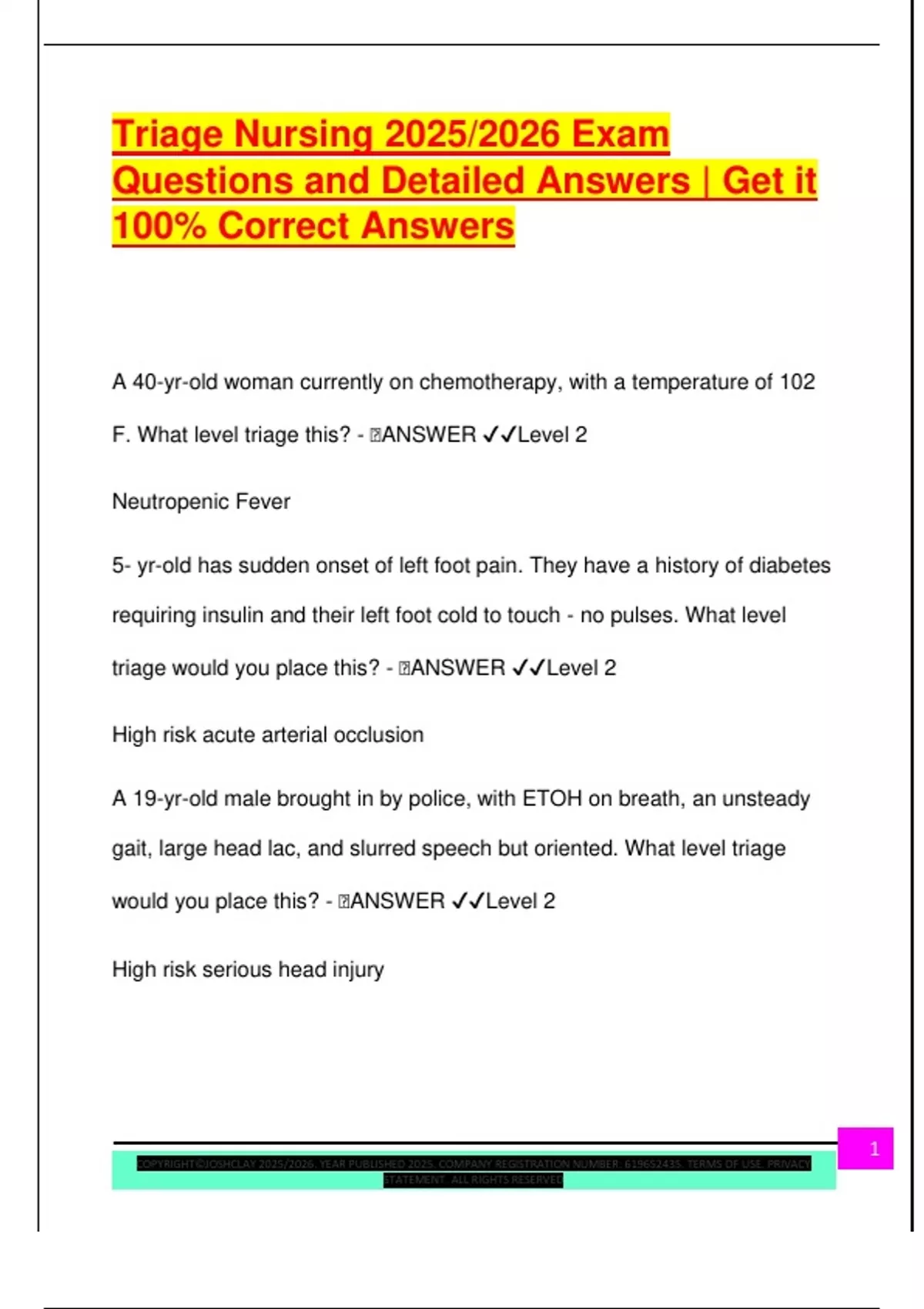 F. What level triage this? - 🧠ANSWER ✔✔Level 2