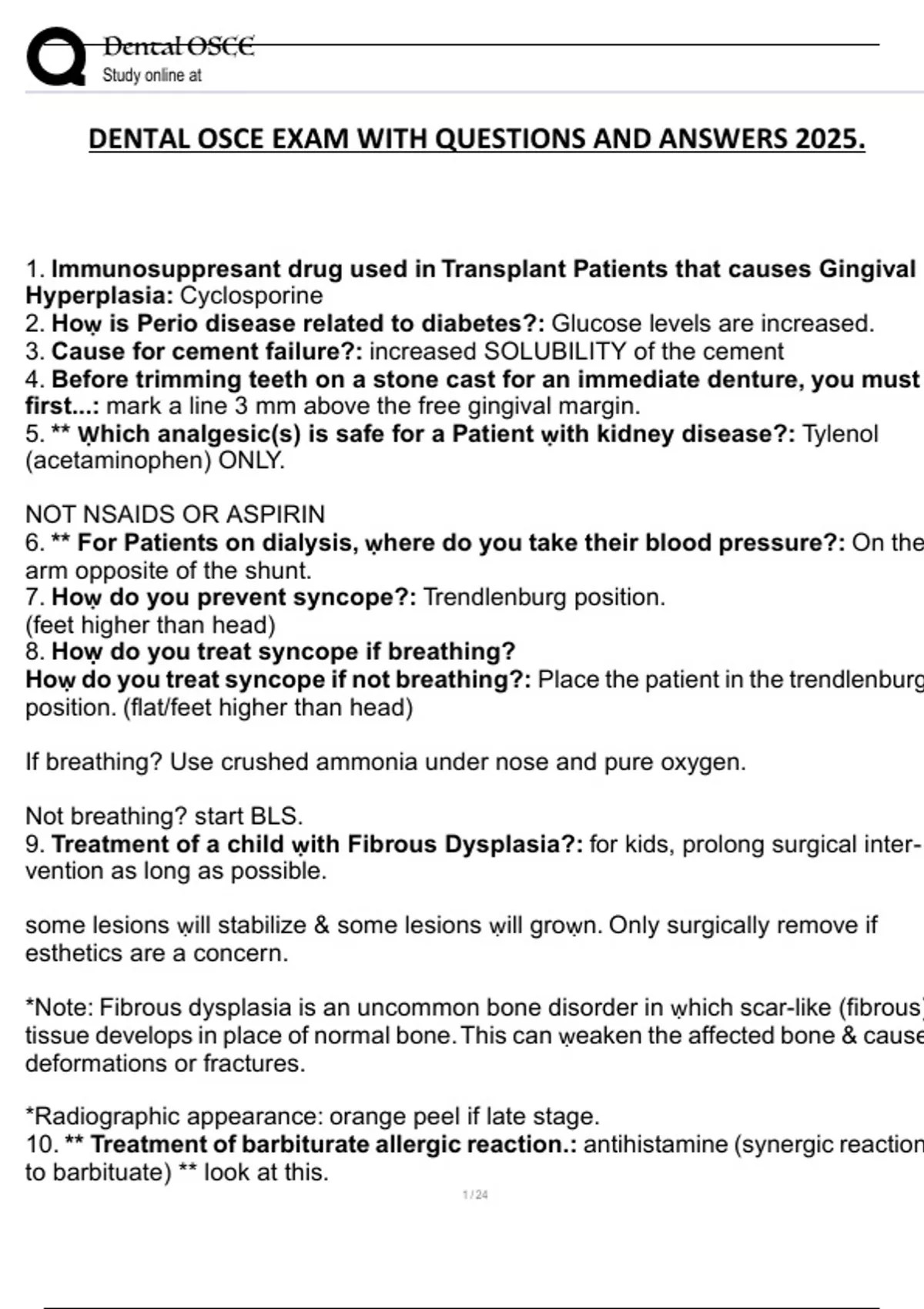 DENTAL OSCE EXAM WITH QUESTIONS AND ANSWERS 2025.