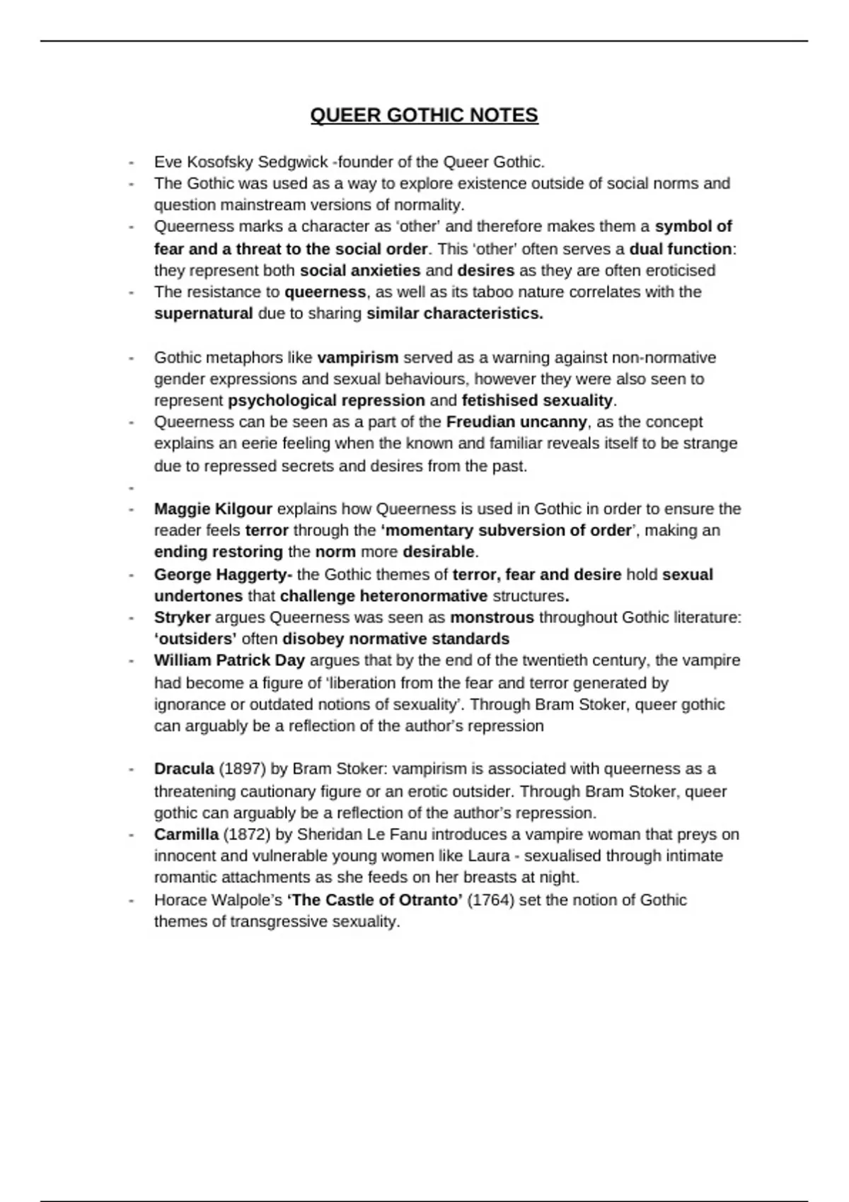- Maggie Kilgour explains how Queerness is used in Gothic in order to ensure the