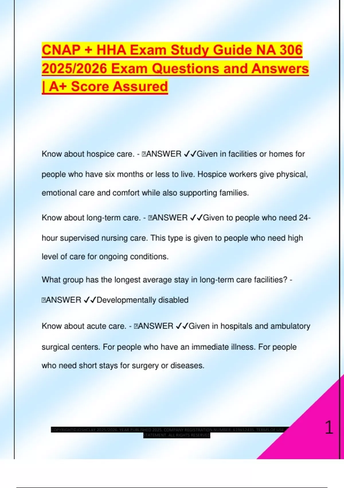 CNAP + HHA Exam Study Guide NA 306
